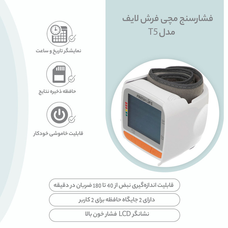 قابلیتهای فشارسنج: اندازهگیری ضربان قلب , اندازهگیری فشار خون , حافظه ذخیره نتایج , نمایش میانگین نتایج