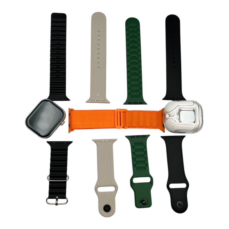ساعت هوشمند 4 عدد بند سیلسکونی 1 عدد بند پارچه ای کابل شارژر مغناطیسی