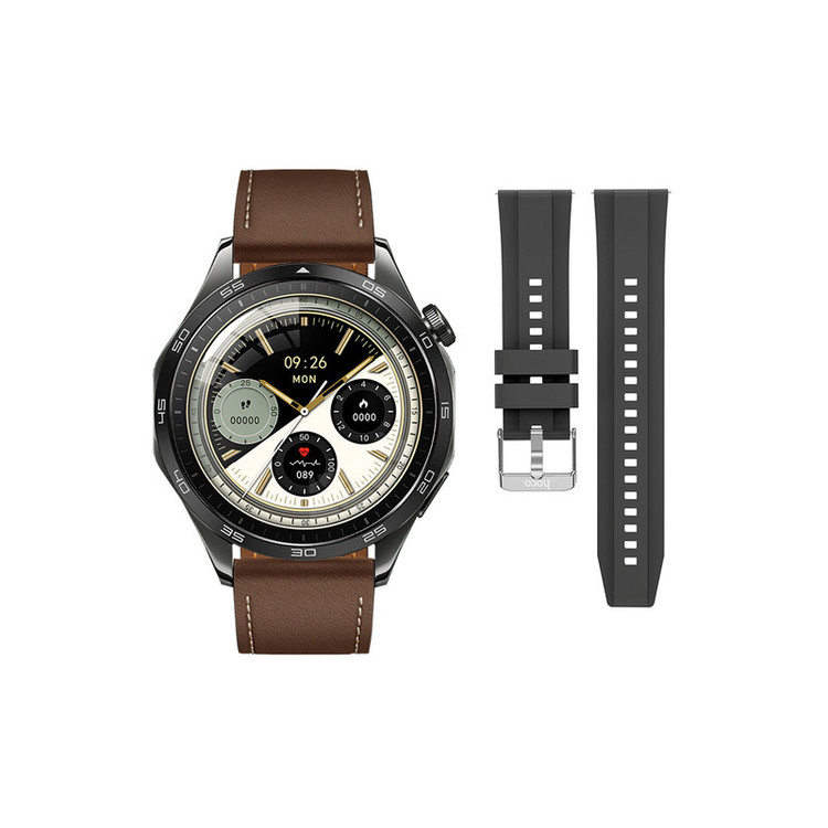 ساعت هوشمند هوکو مدل Y21 دارای قابلیت های قابلیت مکالمه مستقیم، قابلیت مکالمه از طریق بلوتوث بند چرم مصنوعی