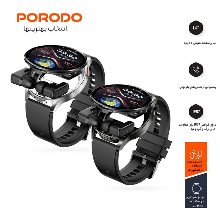 قابلیتهای ساعت هوشمند: صفحه نمایش رنگی , صفحه نمایش لمسی , قابلیت مکالمه از طریق بلوتوث