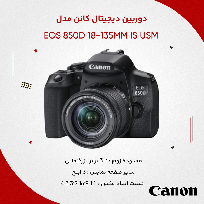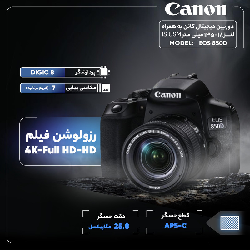 دوربین دیجیتال کانن مدل EOS 850D به همراه لنز 18-135 میلی متر IS USM