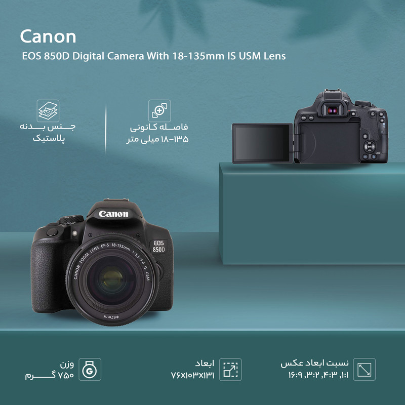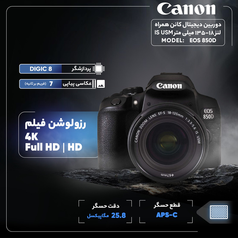 دوربین دیجیتال کانن مدل EOS 850D به همراه لنز 18-135 میلی متر IS USM