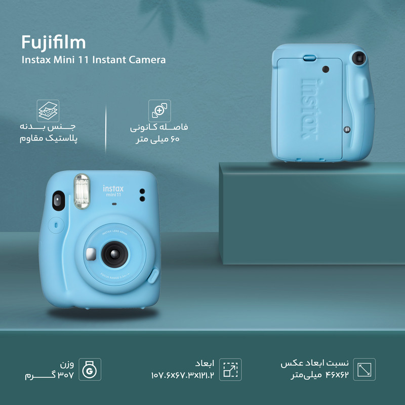 عکاسی میتواند یکیاز جذابترین و لذتبخشترین تفریحات و حرفهها باشد. در این حرفه سرعتعمل یکی از فاکتورهای مهم برای دوربین و شخص عکاس است. مدل «Instax Mini 11» محصولی بسیار جذاب از برند «فوجیفیلم» (Fujifilm) است که بهعنوان وسیله سرگرمی، گزینه بسیار مناسبی برای تمام سنین محسوب میشود. این دوربین با کارایی و طراحی متفاوتی تولید شده است. بهمحض اینکه با آن عکسی بگیرید، آن عکس از شیار کنار دوربین بیرون میآید. درحقیقت عملکرد دوربین چاپ سریع بهاینصورت است که کارتریجی شامل تعدادی فیلم مخصوص درون دوربین قرار میگیرد. با فشردن شاتر، نور از دیافراگم وارد دوربین شده و روی این فیلمهای حساس به نور اثر میگذارد. پس از بستهشدن مجدد دیافراگم، فیلمی که عکس روی آن ثبت شده از شیار کناری بیرون میآید و پس از چند دقیقه قرار گرفتن در معرض نور، کمکم عکس ظاهر میشود. برای استفاده از این دوربین باید کاغذ مخصوص آن را تهیه کنید. عکسها در سایز 46×62 میلیمتر چاپ میشوند. اینمدل در رنگهای متنوعی عرضه میشود تا کاربران بتوانند مطابق سلیقه خود، یکی را انتخاب کنند. تمام رنگهای آن جذاب هستند و کاربر از استفاده از آنها لذت خواهد برد.
