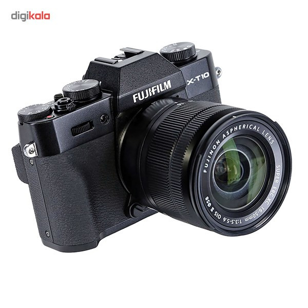 مدل «X-T10» از دوربینهای دیجیتال بدون آینه (Mirrorless) برند «فوجی فیلم» (Fujifilm) است. این مدل خاص به همراه دو لنز 50-16 و 230-50 میلیمتر ارائه میشود. وزن بدنهی این دوربین 381 گرم است. البته میتوانید لنزهایی که مخصوص این دوربین طراحی شدهاند را تهیه و استفاده کنید. روی بدنه روکشی از چرم قرار گرفته است که باعث میشود اصطکاک مناسبی با دست ایجاد شود و بتوانید به راحتی از آن استفاده کنید. این دسته از دوربینها به دلیل حذف آینه از ساختار داخلیشان، حجم بسیار کمتری نسبت به دوربینهای DSLR دارند. X-T10 از محصولات بینظیر این دسته است. حسگر خوشساخت از نوع CMOS است که با ابعاد (APS-C) طراحی شده است. دقت این حسگر 16.7 و دقت مؤثرش 16.3 مگاپیکسل است. عکسها حداکثر با رزولوشن 3246 × 3246 ثبت میشود که وضوح بسیار خوبی دارند. نسبت ابعاد عکسهایی که در آن ثبت میشوند، 16:9 است و ابعاد عکسهای رایج را دارند. فرمت غیرفشردهی آن RAW است و میتوانید عکسهایی بسیار حجیم و باکیفیت را ذخیره کند تا بتوانید آنها را در ابعادی بزرگ چاپ کنید. این دوربین علاوهبر عکاسی، قابلیت فیلمبرداری هم دارد. فیلمها با کیفیت Full HD ذخیره میشوند. برای توضیح در رابطه با عکسبرداری این دوربین باید گفت که حداکثر سرعت شاتر در آن 32000/1 ثانیه و حداقل سرعت آن 30 ثانیه است که میتوانید آن را بنا به موقعیت و نور تنظیم کنید. ISO بین 100 تا 51200 تعبیه شده است. همچنین برای عکاسی سوژههای متحرک میتوانید از قابلیت عکاسی پیاپی آن استفاده کنید. این قابلیت بین 3 تا 8 فریم بر ثانیه برای این دوربین در نظر گرفته شده است. فلاش این دوربین از نوع Pop-Up است و در صورت نیاز میتوانید از آن استفاده کنید. به لطف خروجی HDMI، میتوانید فایلهای ذخیرهشده در این دوربین را با کیفیت HD یا Full HD روی تلویزیون، لپتاپ یا هر نمایشگری که مجهز به پورت HDMI باشد، منتقل کنید. همچنین برای انتقال فایلها به کامپیوتر و اضافهکردنشان به آرشیو، میتوانید از خروجی USB استفاده کنید. البته میتوانید از اتصال بیسیم Wi-Fi هم استفاده کنید و تصاویر را به موبایل، کامپیوتر یا لپتاپ استفاده کنید. به لطف قابلیت PictBridge هم میتوانید عکسها را مستقیما به پرینترهایی با همین قابلیت منتقل و چاپ کنید. کارتحافظههای قابلاتصال به این دوربین SD - SDHC – SDXC هستند. باتری آن از نوع یونلیتیوم است و دوام خوبی دارد. به همراه این دوربین لوازمجانبی ضروریاش ارائه میشود. به لطف صفحهنمایش LCD 3 اینچی آن، عکاسی به صورت Live View ممکن شده است. تصاویر با کیفیت و وضوح بسیار خوبی و با دفت 92000 نقطه به نمایش در میآیند. لنزهای همراه این دوربین از کیفیتساخت بسیار خوبی برخوردار شدهاند و مکمل یکدیگراند. لنز کیت این دوربین 50-16 میلیمتر است که یک لنز Wide محسوب میشود و میتواند زاویهی گستردهای را پوشش دهد. محدوده دیافراگم آن f/3.5 - 5.6 است و بیشتر برای عکاسی از مناظر وسیع مناسب است. در کنارش، وجود لنز 230-50 میلیمتر که جزو مدلهای زوم محسوب میشود، امکان عکاسی از سوژههای دور را فراهم میکند. با تهیهی این مجموعه دوربین و لنز، میتوانید به میل خود از تمامی مناظر و سوژهها و با سبکهای متفاوتی عکاسی کنید.
