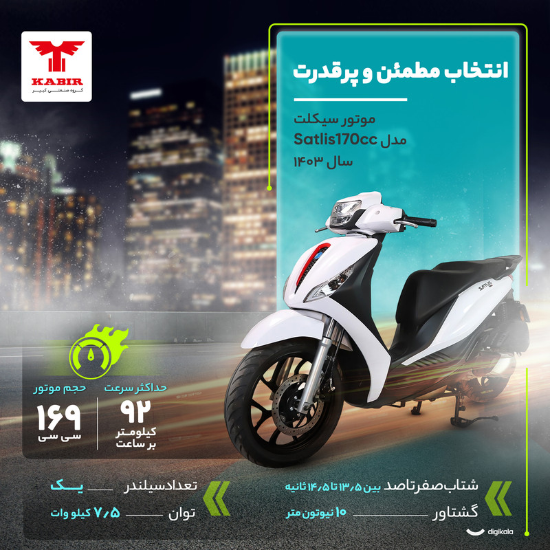موتورسیکلت Satlis 170 cc مدل 1403 یک گزینهی جمعوجور، کممصرف و اقتصادی برای ترددهای شهری و روزمره است که با طراحی مدرن و ویژگیهای کاربردی، نیازهای مختلف کاربران را برآورده میکند. این اسکوتر سبک، با وزن خالص تنها ۱۲۲ کیلوگرم، بسیار مناسب برای کاربرانی است که به دنبال ترکیبی از سهولت استفاده و مصرف پایین هستند.