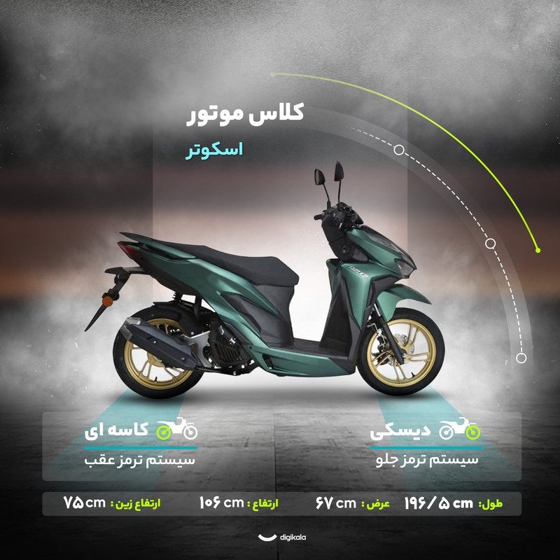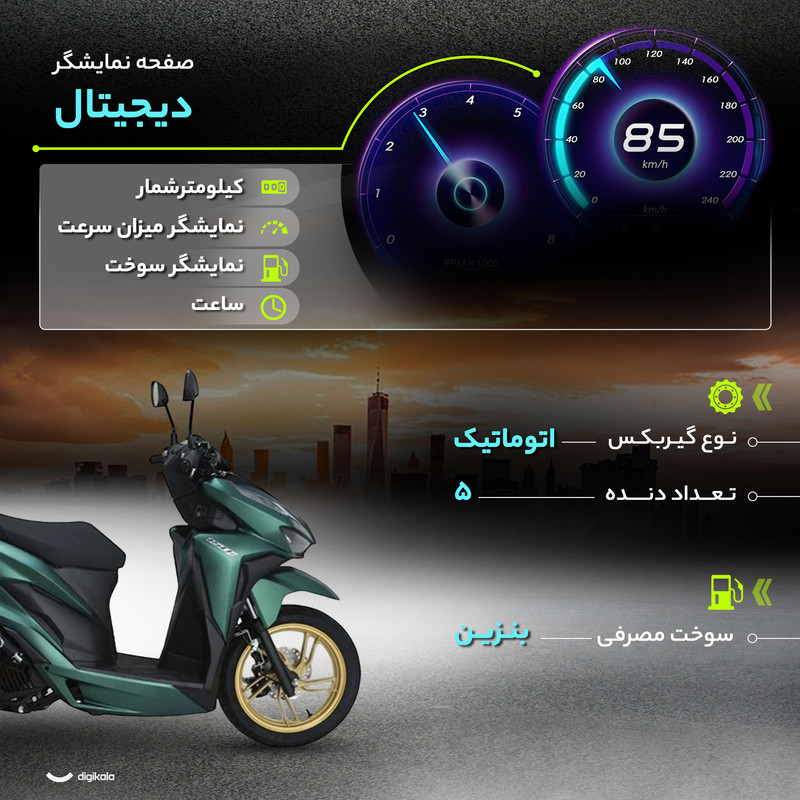 ایمنی در این مدل با سیستم ترمز ترکیبی یا CBS ارتقا یافته است؛ این فناوری، نیروی ترمز را به صورت هوشمند بین چرخ جلوی دیسکی و چرخ عقب کاسهای توزیع کرده و توقفی باثبات و مطمئن را فراهم میآورد. این اسکوتر با سیستم راهاندازی دوگانه استارتی و هندلی به شما اطمینان میدهد که در هر شرایطی میتوانید موتور را به راحتی روشن کنید. در نهایت، موتور سیکلت کبیر کلیک 150 با تمرکز بر کیفیت قطعات داخلی و ایمنی پیشرفته، یک انتخاب هوشمندانه برای یک سواری مطمئن و لذتبخش در شهر است.