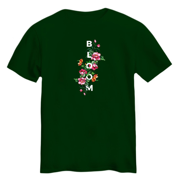 تی شرت آستین کوتاه زنانه مدل شکوفه گل رنگ سبز