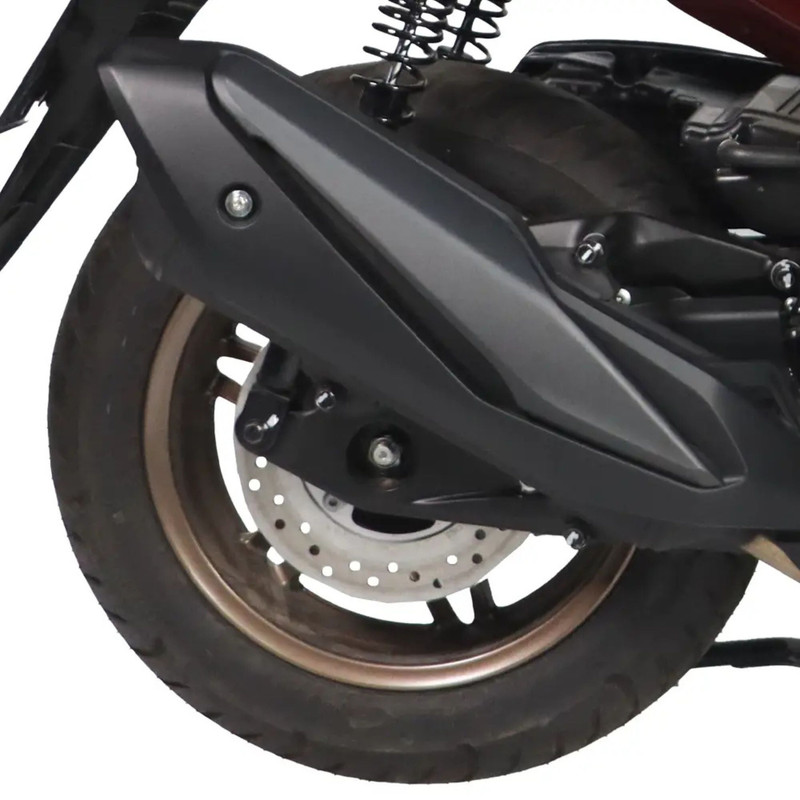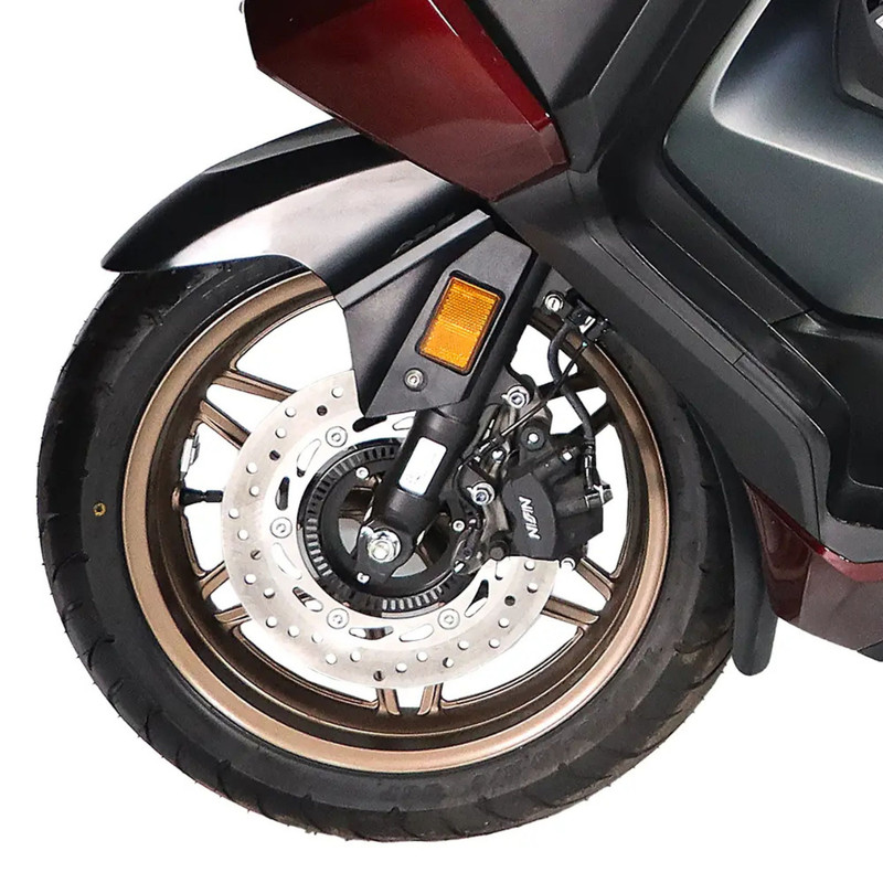 برای افزایش ایمنی، از سیستم ترمز ABS به همراه دیسکهای ۲۵۶ میلیمتری جلو و ۲۴۰ میلیمتری عقب استفاده شده است. همچنین، سیستم تعلیق جلو تلسکوپی و تعلیق عقب از نوع بازویی چرخشی است که موجب سواری نرم و پایدار در مسیرهای ناهموار میشود.