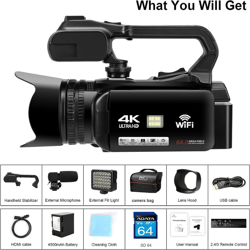 دوربین فیلم برداری مدل 4K Ultra HD 64MP Streaming 60fps With 64G SD Card