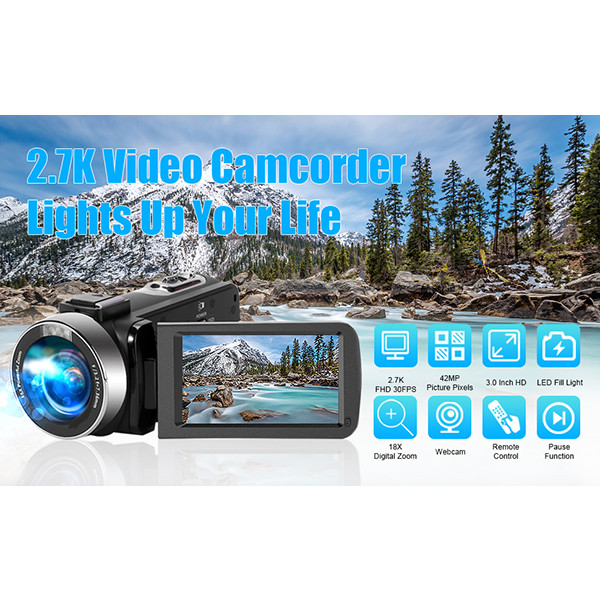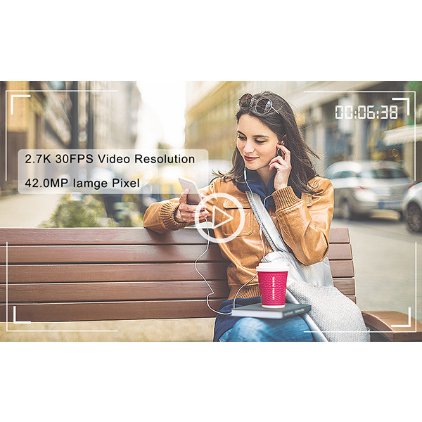 (دوربین فیلمبرداری 2.7K 42 مگاپیکسلی FHD): این دوربین فیلمبرداری حداکثر از وضوح تصویر 2.7k/30fps Full HD و وضوح تصویر JPEG 42.0MP پشتیبانی میکند. این یک دوربین کوچک، ارزان و سبک وزن است که به راحتی قابل حمل و کار است و می توان از آن برای ثبت لحظات زیبای مختلف در زندگی روزمره استفاده کرد. به لطف عملکرد عالی زوم دیجیتال 18 برابری این دوربین، گرفتن عکس از مناظر دور به وضوح در فضای باز راحت است.