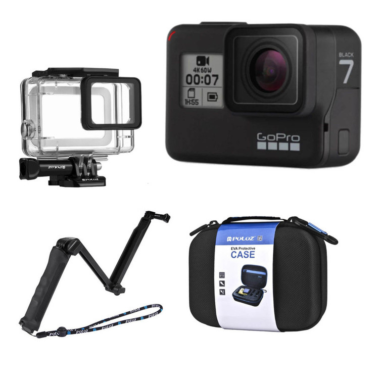 دوربین فیلم برداری ورزشی گوپرو مدل HERO7 Black Quick Stories به همراه قاب ضدآب و مونوپاد 3Way و کیف پلوز