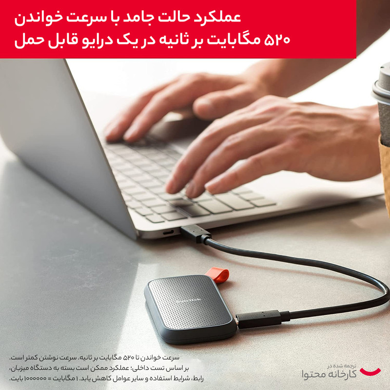 عملکرد سریع حالت جامد را با سرعت خواندن 520 مگابایت بر ثانیه در درایو قابل حمل دریافت کنید. (سرعت خواندن تا 520 مگابایت بر ثانیه. سرعت نوشتن کمتر. بر اساس آزمایش داخلی؛ عملکرد ممکن است بسته به دستگاه میزبان، رابط، شرایط استفاده و سایر عوامل کمتر باشد. 1MB=1,000,000 بایت.)