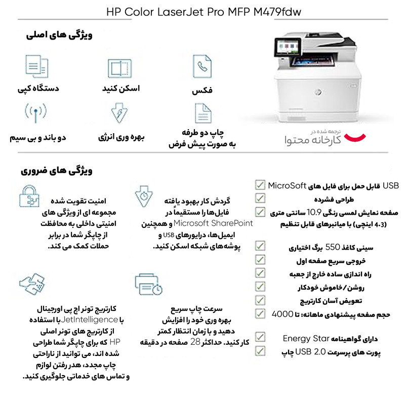 پرینتر لیزری رنگی اچ پی مدل Color LaserJet Pro MFP M479fdw