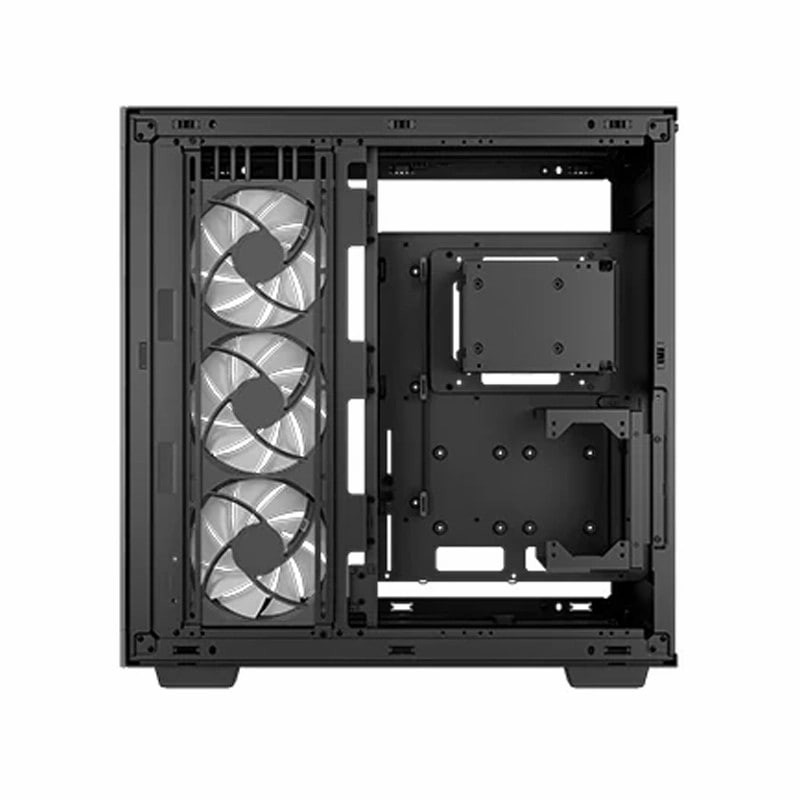 کیس گیمینگ DeepCool CH780 با طراحی آکواریومی و فرم فاکتور Mid Tower، ترکیبی از ساختار فنی پیشرفته و زیبایی چشمگیر را ارائه میدهد. این کیس با دو پنل شیشهای حرارتدیده در دو طرف بدنه، امکان نمایش کامل قطعات داخلی را فراهم کرده و برای سیستمهای مجهز به نورپردازی ARGB ایدهآل است.