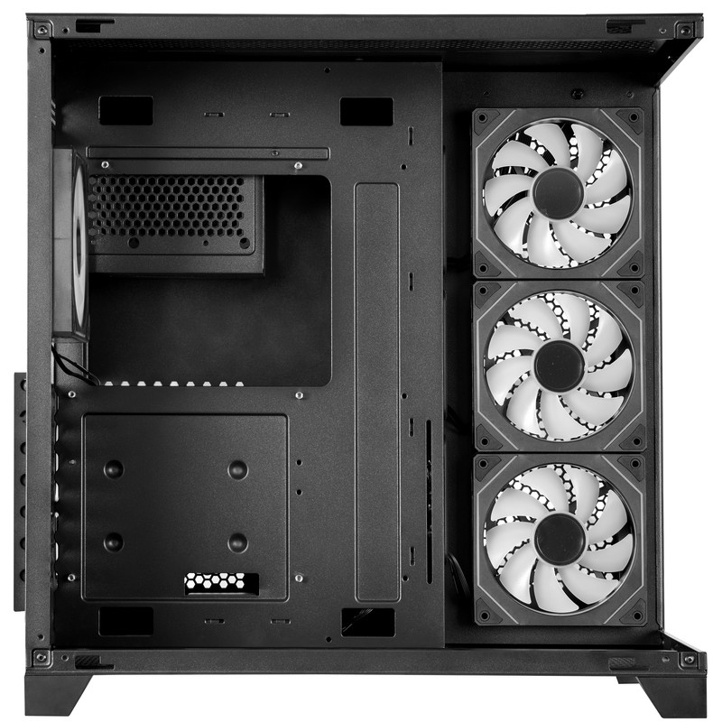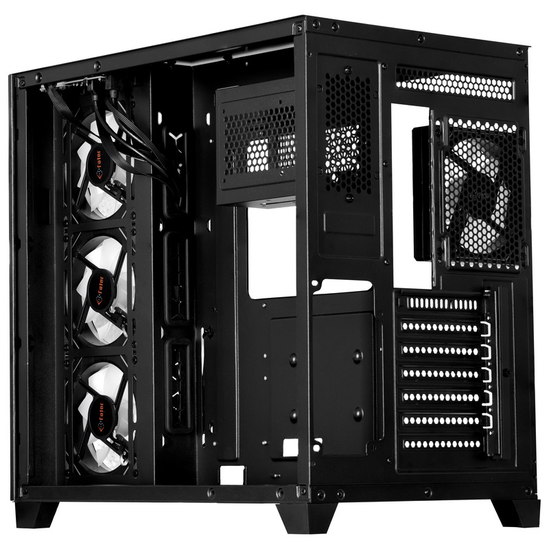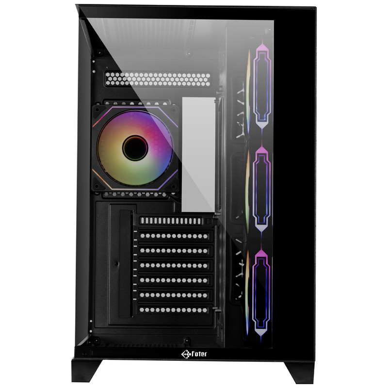 کیس گیمینگ فاطر FG-880B با ابعاد ۴۲۵x۲۸۰x۴۳۵ میلیمتر و وزن ۶.۲۵ کیلوگرم در کلاس Mid Tower قرار دارد و ترکیبی از فلز و شیشه برای بدنه خود دارد که علاوه بر استحکام، ظاهری مدرن و شفاف ارائه میدهد. طراحی آکواریومی دو طرفه پنلها امکان نمایش قطعات داخلی و نورپردازی ARGB را فراهم کرده و جذابیت بصری بالایی ایجاد میکند. این کیس با سازگاری کامل با مادربردهای ATX، E-ATX، microATX و Mini-ITX فضایی گسترده برای نصب قطعات متنوع فراهم میکند و از کارت گرافیک تا طول ۴۱۰ میلیمتر و خنککننده پردازنده تا ارتفاع ۱۶۵ میلیمتر پشتیبانی میکند. محل نصب پاور در پایین-پشت کیس قرار دارد و امکان نصب پاورهای ATX PS۲ تا طول ۲۱۰ میلیمتر فراهم شده است. FG-880B دارای ده جایگاه فن است که چهار عدد از پیش نصب شده و با نورپردازی ARGB جلوهای چشمگیر ایجاد میکنند و امکان نصب فنهای ۱۲۰ میلیمتری در سقف، کف، کنار و پشت کیس وجود دارد. همچنین قابلیت نصب رادیاتور واترکولینگ تا ابعاد ۳۶۰ میلیمتر در نظر گرفته شده است. پنل جلویی کیس شامل یک پورت USB 3.2 Type-C، یک پورت USB 3.0، یک پورت USB 2.0 و دو جک ۳.۵ میلیمتری است که دسترسی سریع و آسان به اتصالات را فراهم میکند. ویژگیهای دیگری مانند سیستم مدیریت کابل، فیلتر گرد و غبار، نصب بدون ابزار درگاههای توسعه و نصب درایوهای ۲.۵ اینچی، کاربری راحت و منظم را برای کاربران حرفهای فراهم میکند. FG-880B با طراحی مهندسی شده، تهویه مناسب، کیفیت ساخت بالا و امکانات کامل یک کیس گیمینگ همهجانبه است که تجربهای حرفهای و بصری رضایتبخش برای گیمرها ارائه میدهد.