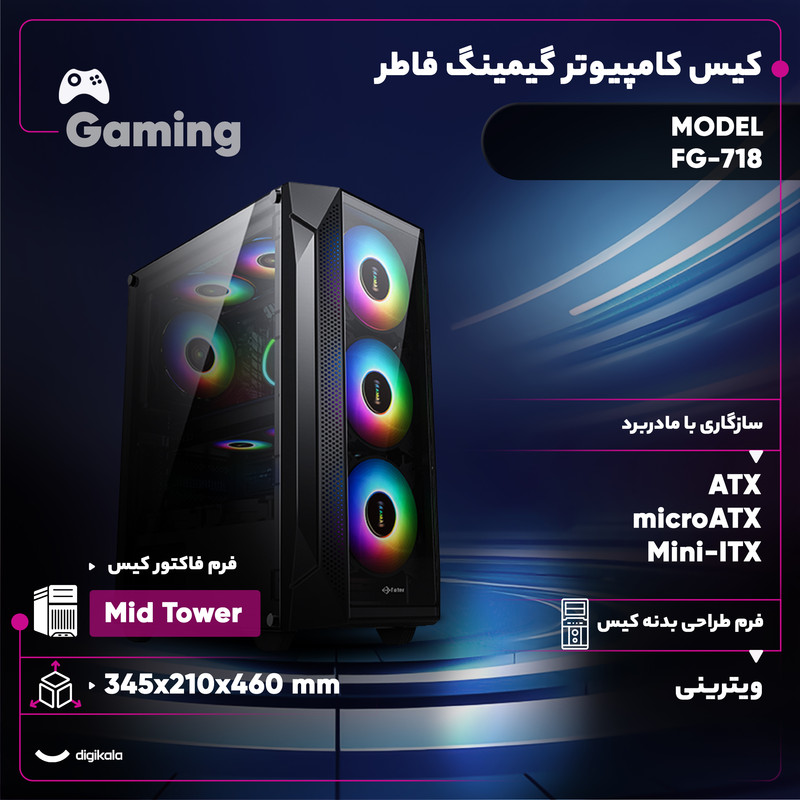 کیس FG-718 فاطر با طراحی هوشمند و ظاهری جذاب،برای کاربران حرفه ای و گیمرها طراحی شده است که بهدنبال کیسی باطراحی خاص هستند.