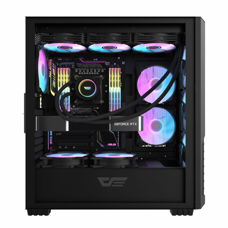 کیس darkFlash DF2100 ATX یک کیس گیمینگ اقتصادی و کاربردی با طراحی ساده اما مدرن است که برای اسمبل سیستمهای میانرده و نیمهحرفهای طراحی شده است. این کیس در فرم فاکتور Mid-Tower ساخته شده و از مادربردهای ATX، M-ATX و E-ATX پشتیبانی میکند. پنل کناری آن از شیشه حرارتدیده است که امکان مشاهده فضای داخلی و نورپردازی قطعات را فراهم میکند.