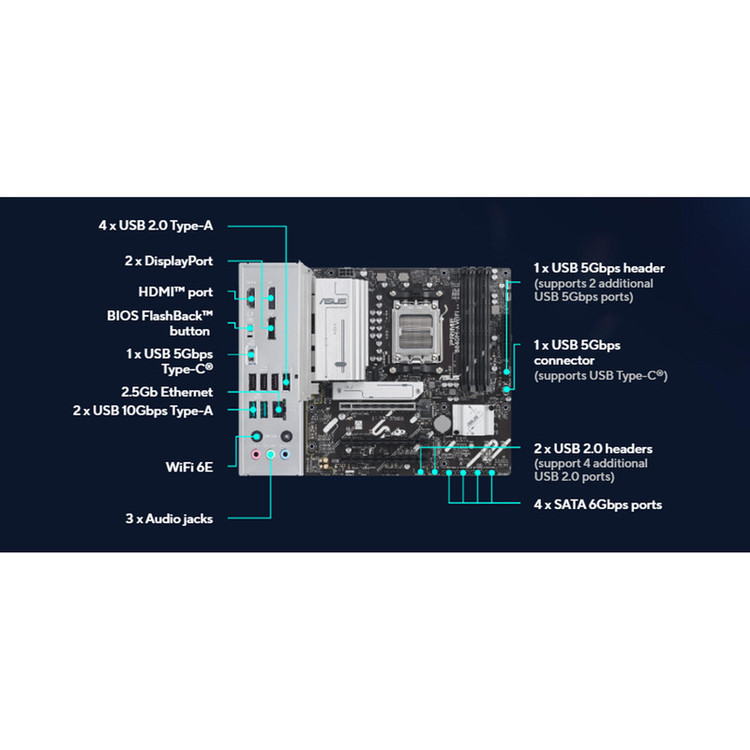 سایر توضیحات مربوط به اسلاتها : یک عدد اسلات PCIe 4.0 از نوع x16 با عملکرد در پیکربندی x16 / یک عدد اسلات PCIe 4.0 از نوع x16 با عملکرد در پیکربندی x8/x4 / یک عدد اسلات PCIe 3.0 از نوع x16 با عملکرد در پیکربندی x1