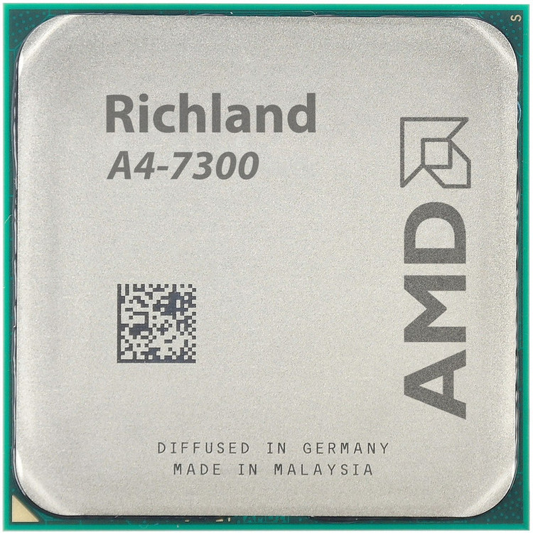 پردازندهی «A4-7300» از سری پردازندههای ریچلند (Richland) ساخت شرکت «AMD» است. این پردازنده دارای لیتوگرافی 32 نانومتری است؛ لیتوگرافی پایینتر پردازنده موجب شده از مصرف انرژی و اشغالکردن فضای بیشتر جلوگیری شود. برای بهرهمندی از این پردازنده باید از مادربردهایی استفاده کرد که دارای سوکت AMD FM2 هستند. این پردازنده به صورت 64 بیتی است. دو هسته در این پردازنده در کنار دو رشته ایفای نقش میکنند. دوهستهای بودن این پردازنده شاید کم بهنظر برسد؛ اما A4-7300 بهراحتی میتواند از قابلیت اجرای همزمان چند برنامه (Multitasking) پشتیبانی کند؛ این امر موجب شده در کنار دو رشته فعالیتهای سیستم، به صورت موازی دنبال شود. حوزهی فرکانسی فعالیت این پردازنده 4 گیگاهرتز است. این عدد از ضرب فرکانس مبنای 100 مگاهرتزی در ضریب Multiplier به دست میآید که در این مدل عدد 4 است. بازبودن Multiplier موجب شده دیگر نیازی به افزایش فرکانس مبنا نباشد و با افزایش فرکانس مرجع اورکلاک انجام گیرد. اما در مدلهایی که Multiplier باز نیست، برای ورود به حالت اورکلاک باید فرکانس مبنا ارتقا یابد. حافظهی کش استفادهشده در سطح اول برای هر هسته 16 کیلوبایت است. مقدار این حافظه در سطح دوم عدد 1 مگابایت برای هر هسته است. توانی که A4-7300 با آن فعالیت میکند، 65 وات است. این پردازنده از پردازندهی گرافیکی Radeon HD 8470Dساخت AMD بهره میبرد. A4-7300 همچنین از قابلیتهای ABM/AES/AMD-V/AMD64/AVX/AVX 1.1/BMI1/CVT16/F16C/FMA3/FMA4/MMX/SSE/SSE2/SSE3/SSE4.1/SSE4.2/SSE4a/Supplemental SSE3/TBM/XOP پشتیبانی میکند. حافظهی پشتیبانیشده در این مدل DDR3 است. این پردازنده قابلیت پشتیبانی از PCI Express 2.0 را دارد و از Unified Video Decoder هم پشتیبانی میکند. در جعبهی محصول، استیکر لوگوی AMD و دفترچه راهنمای کاربر همراه با پردازندهی A4-7300 خدمتتان تقدیم میشود.
