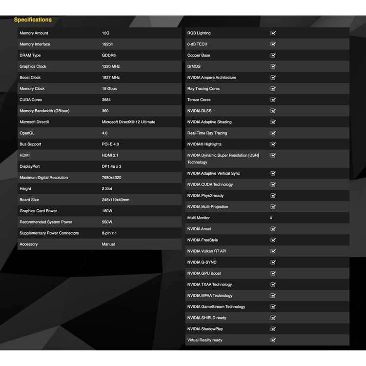 Microsoft DirectX 12 Ultimate CUDA Cores: 3584