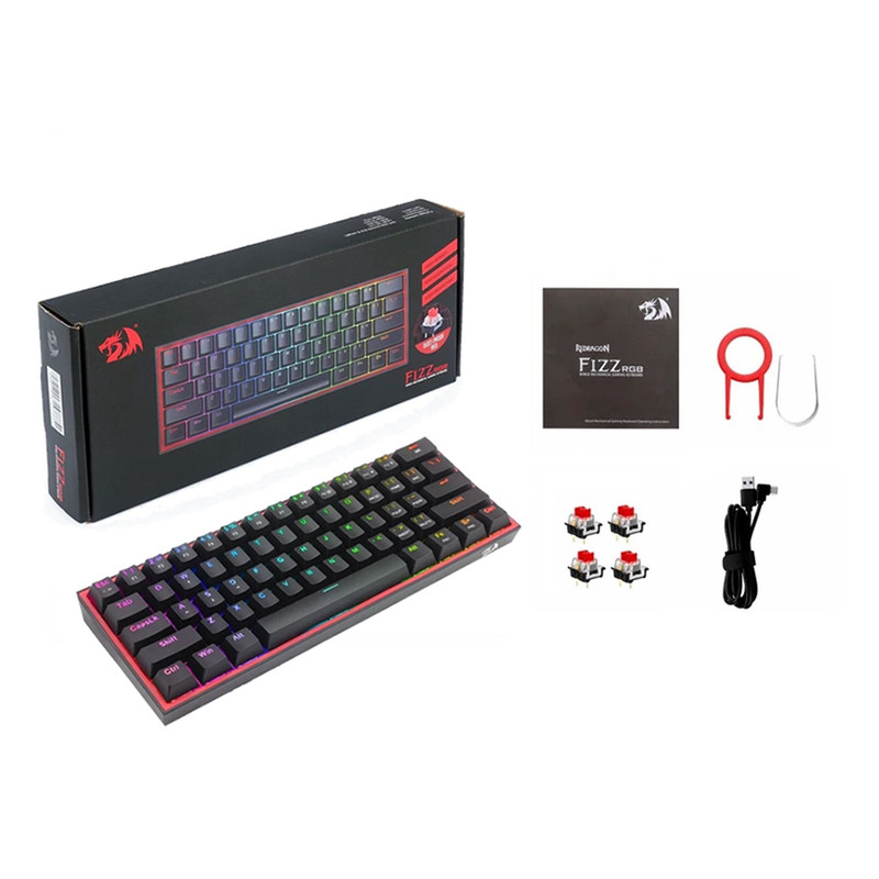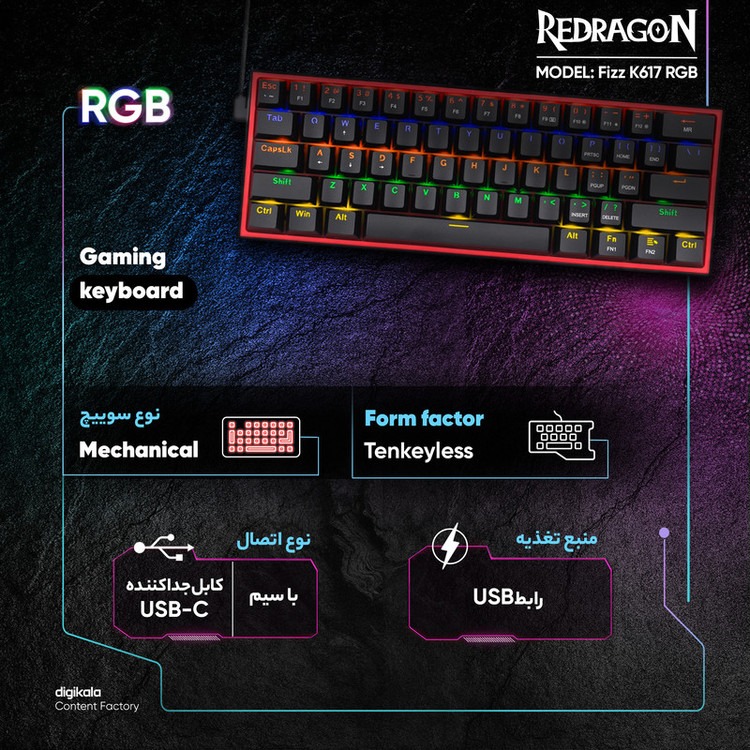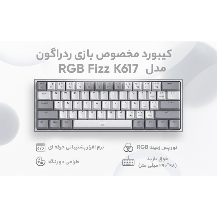 کیبورد گیمینگ ردراگون مدل K617 FIZZ، سوییچ مکانیکال قرمز، Tenkeyless، نورپردازی RGB