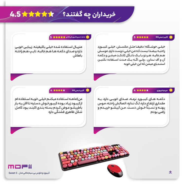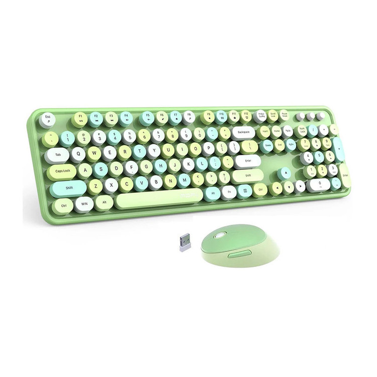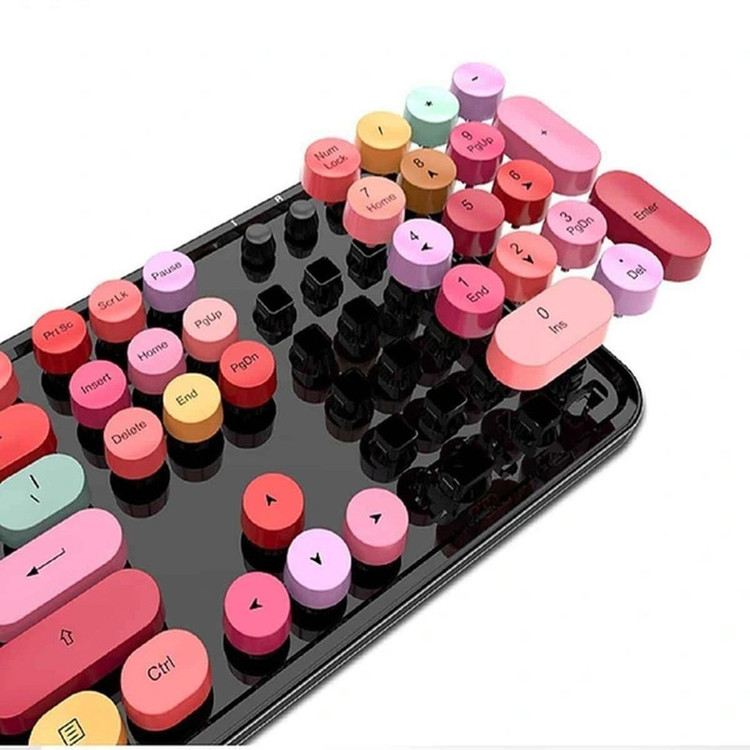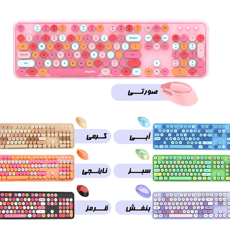 کیبورد و ماوس بیسیم مافی مدل Sweet S یک مجموعه زیبا و کارآمد است که طراحی آن از ماشینهای تحریر قدیمی الهام گرفته شده است. کلیدهای دایرهای این کیبورد، که از نوع ممبرین (Membrane) هستند، تجربه تایپ نرم و کم صدایی را فراهم میکنند. اتصال بیسیم این مجموعه از طریق دانگل USB انجام میشود، که امکان استفاده راحت و بدون کابل را به کاربران میدهد.