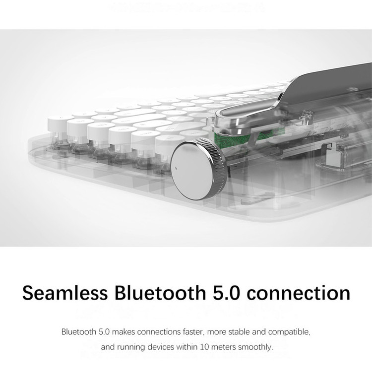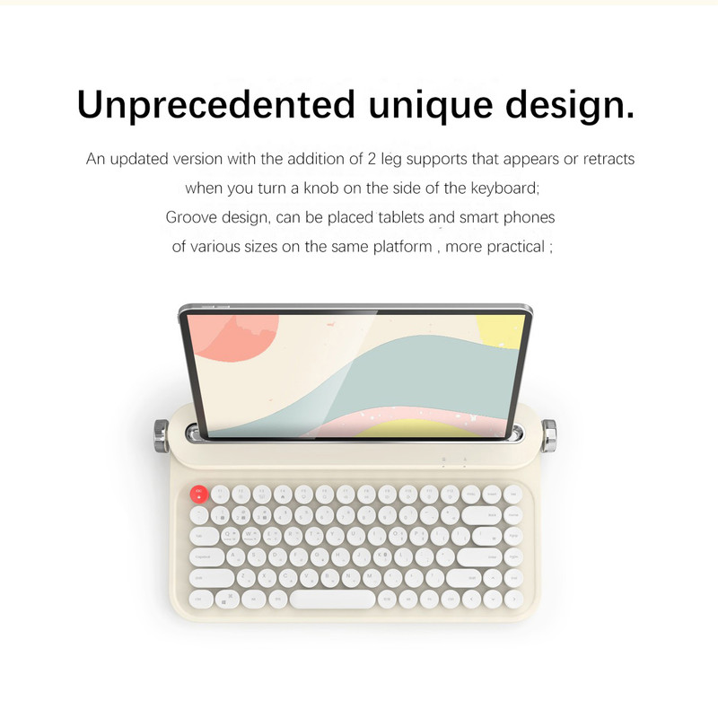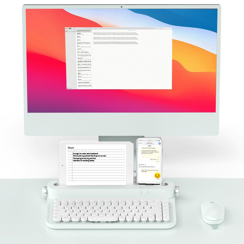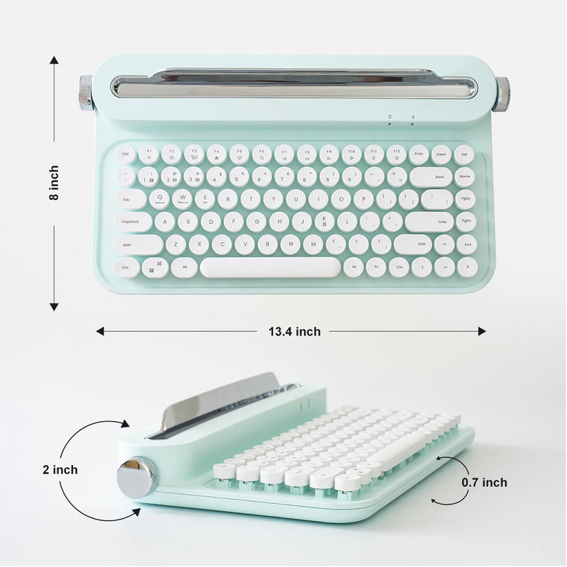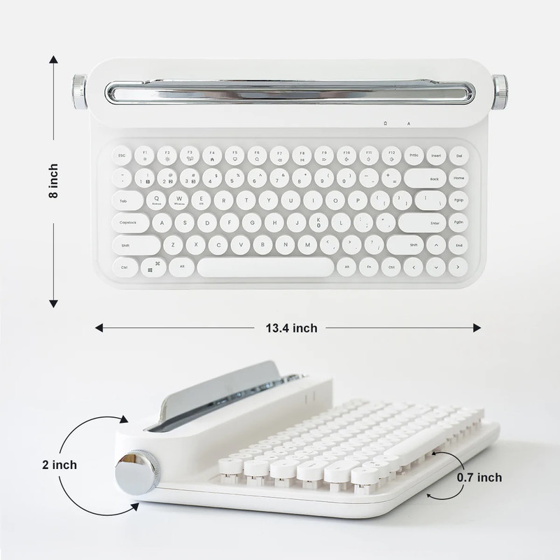 سوییچهای ممبران با عمر مفید ۲۰ میلیون ضربه، صدای کمتری نسبت به کیبوردهای مکانیکال دارند و برای استفادههای خانگی و اداری مناسباند. علاوه بر آن، ۸۶ کلید به همراه ۱۲ کلید میانبر، امکانات لازم برای انجام کارهای روزمره و میانبرهای رایج را فراهم میکند. پایههای قابل تنظیم و ضد لغزش نیز کمک میکنند تا هنگام تایپ، کیبورد روی سطح ثابت بماند. بخش بالایی کیبورد یک شیار مخصوص دارد که میتوان از آن بهعنوان استند تلفن همراه یا تبلت استفاده کرد و حس تایپ با ماشین تحریر را به کاربر منتقل میکند. به لطف مصرف انرژی بهینه، عمر باتری قلمی تا ۱۲ ماه ماندگاری دارد و برای بسیاری از کاربران میتواند تجربهای بیدردسر و طولانی باشد.