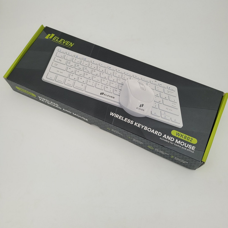 مینی کیبود بیسیم ELEVEN مدل WK802 دارای طراحی باریک، ارگونومیک، جمع و جور و بسیار زیبا می باشد.طراحی موس و کلید های قوسی شکل کیبوردبه نحوی است که از خستگی دست ها جلوگیری می نماید. بدلیل طراحی جمع و جور ، سبک و به راحتی قابل حمل می باشد. این کیبورد دارای 79 عدد کلید می باشد و موس آن دارای 4 کلید و مناسب کار کردن با هر دو دست می باشد و برد آن 10 متر است .همچنین این کیبورد دارای کلیدهای چندرسانه ای Fn + F1 ~ F12 که می توانند پخش موسیقی، تنظیم، پخش / مکث و سایر عملیات را انجام دهند و در وقت شما صرفه جویی کنند. ماوس این محصول به صورت سایلنت عرضه شده که خودش یکی از نقاط قوتش هستش. ماوس این محصول یک عدد باتری قلمی و کیبرد آن بیک عدد باتری نیم قلم نیاز دارد.