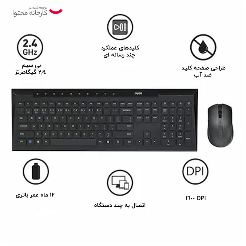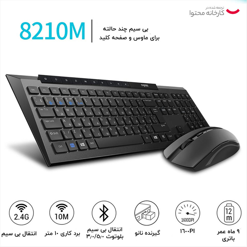 کیبورد و ماوس بی سیم رپو مدل 8210M، سوییچ ممبران، Full-Size