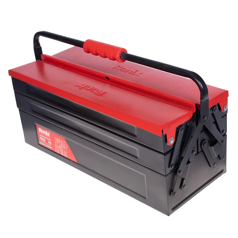 دارای استاندارد ISO ۹۰۰۱ و استفاده از پرچ های فولادی جهت طول عمر بیشتر و کارایی بهتر دارای ۳ طبقه جا دار، طول ۵۰ سانتی متر و درب اتوماتیک با وزن تقریبی ۱٫۵ کیلوگرم طراحی ارگونومیک دسته با روکش ABS و بدنه از جنس فولاد مقاوم رنگ بدنه به روش گوره ای الکترواستاتیک و ضد خش