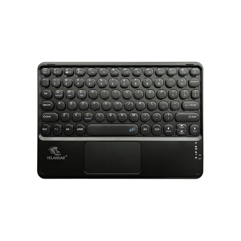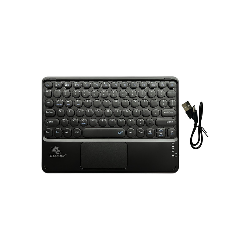 مینی کیبورد بلوتوثی برند yelandar را میتوان یکی از بهترین کیبوردهای همراه موجود دانست. این کیبورد قابلیت اتصال به تلفن همراه، رایانه، تبلت، تلویزیون و ... را دارد. این اتصال از طریق بلوتوث انجام میشود. بی صدا بودن و کارکرد نرم دکمهها و موس پد روان این محصول میتوان از ویژگیهای حائز اهمیت آن به شمار آورد. بین کلیدها مقداری فاصله قرار دارد که اشتباهات تایپی را تا حد بسیار زیادی کاهش میدهد. چهار چراغ نمایشگر روی کیبورد قرار داده شده است که شامل نشاندهنده پاور، شارژ، اتصال بلوتوث و CapsLock میشود. این کیبورد شارژی است و از طریق کابل تایپ سی که به همراه آن قرار داده شده است، انجام میپذیرد. اتصال این کیبورد کاملاً بی سیم بوده که این اتصال بلوتوثی تا 10 متر قطع نمیشود. طراحی ارگونومیک این کیبورد به گونهای است که دست خسته نشود.
