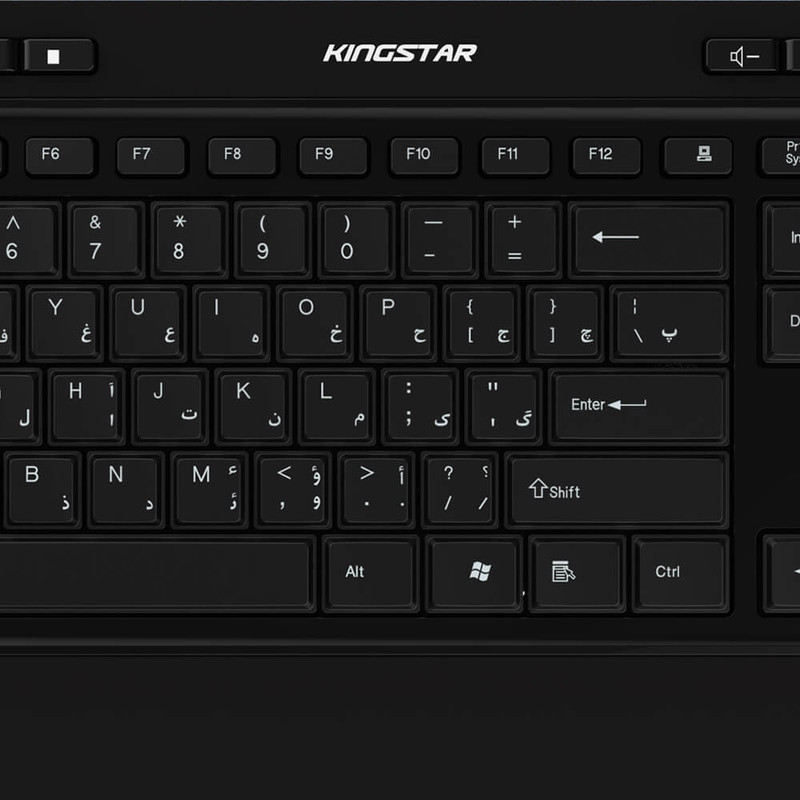 کیبورد کینگ استار مدل kb97w، بدون سیم و اتصال آن از نوع دانگل USB (2.4 گیگاهرتز) میباشد. این کیبورد دارای 124 کلید برای انجام فعالیتهای کامپیوتری است. همچنین کیبورد kb97w دارای 17 کلید میانبر به منظور انجام سریعتر کارهاست که عبارتند از Prev. Page, Next Page, Web Home, email, Search, Refresh, Setting, Play/Pause, Prev. Track, Next Track, Stop, Volume, Mute, Music, Sleep, Awake, Power. کیبورد کینگ استار مدل kb97w برای استفادههای روزمره مناسب میباشد و دارای محدوده عملیاتی 10 متر است. از دیگر ویژگیهای این کیبورد محصول کمپانی کینگ استار، طراحی کلیدها به گونهای که امکان تایپ کردن در مدت زمانی طولانی را فراهم می کند، دسترسی راحت به تمامی کلید های کاربردی، طراحی نرم و سایلنت کلید ها، با دوام و دارای کلید های مات میباشد.