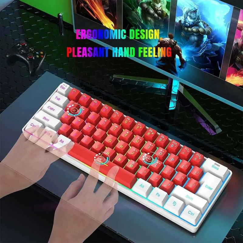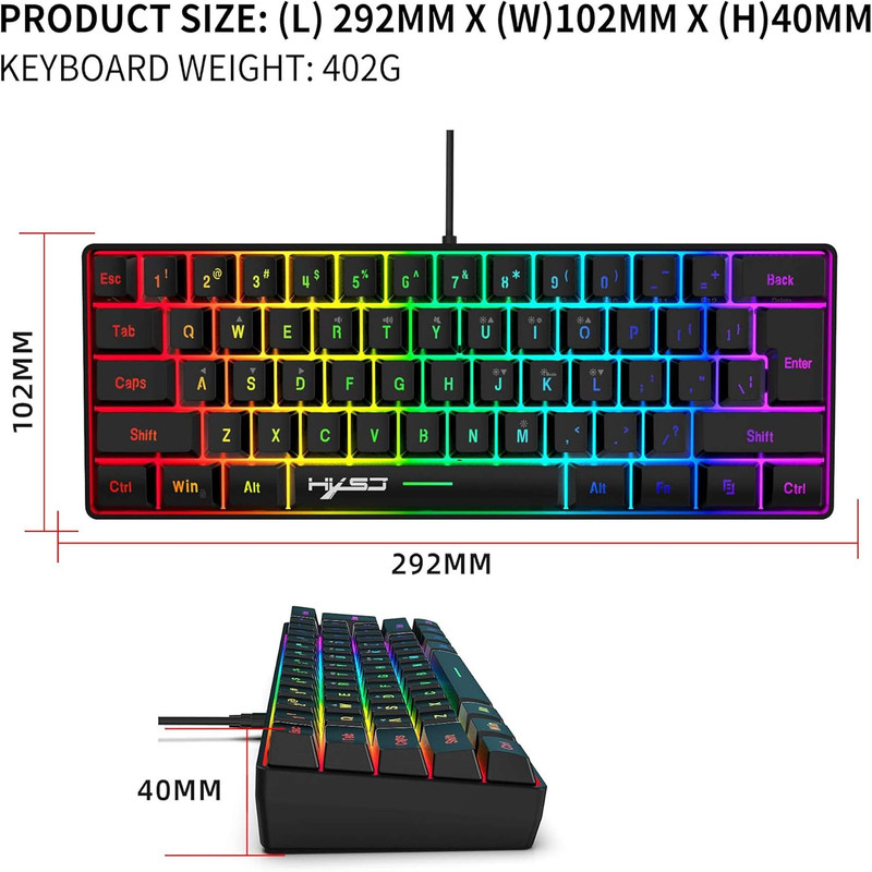 این صفحه کلید مکانیکی واقعی نیست، اما با حس لمسی مشابه بسیار خوبی است.صفحه کلید RGB بازی 61 کلید HXSJ V700 برای گیمرها صفحه کلید USB با نور پس زمینه با ترکیب کلیدهای میانبر چندگانه برای PUBG Home