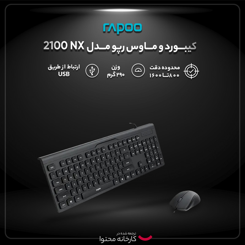 NX 2100 یک محصول (کیبورد همراه با ماوس) است که بهصورت با سیم به کامپیوتر شما متصل میگردد. این محصول توسط شرکت رپو که به تازگی محصولات خوبی را به بازار عرضه کرده، طراحی و تولید شده است که دارای کیفیت ساخت بالایی می باشد. ماوس دارای دقت 1000DPI است.