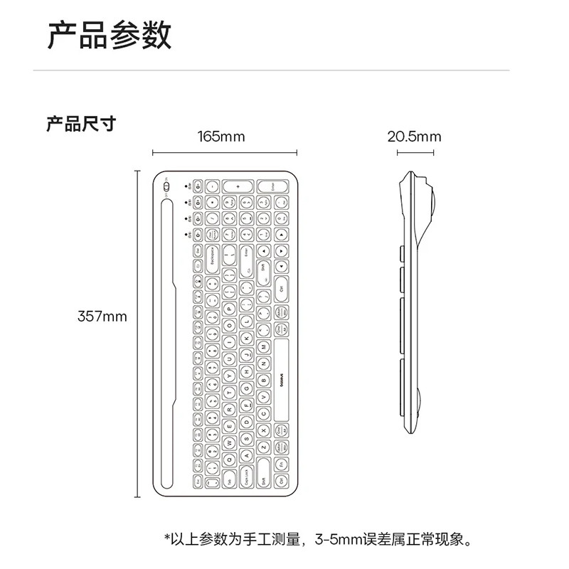 ابعاد این محصول تقریبا برابر با 35x16x2 سانتی متر است که علاوه بر بی سیم بودن به 4 دستگاه همزمان متصل می شود. ورژن بلوتوث به کار رفته در این محصول 5.1 است. این نسخه عملکرد روان و پایدار را ارائه می دهد و دارای قابلیت ضد تداخل قوی است. در واقع شما می توانید همزمان چهار دستگاه ( شامل گوشی همراه،تبلت و لپتاپ ) را به این محصول متصل کنید و با استفاده از یک کلید می توان بین دستگاه ها سوییچ کرد و نیاز به جفت شدن های مکرر از بین می رود.