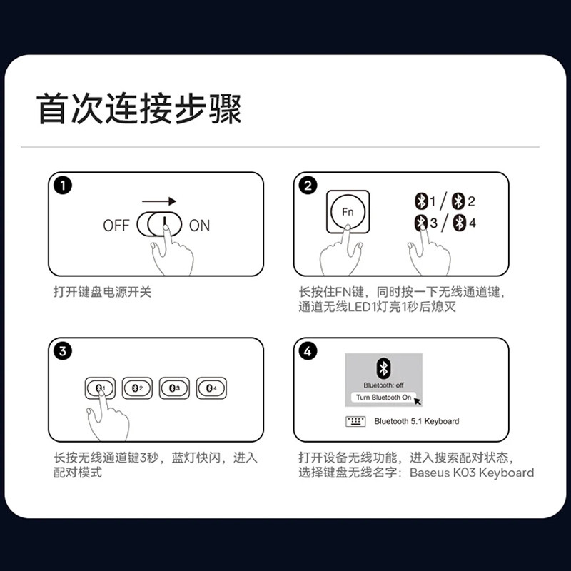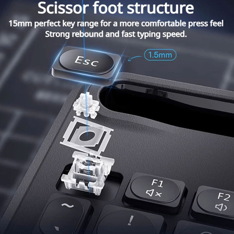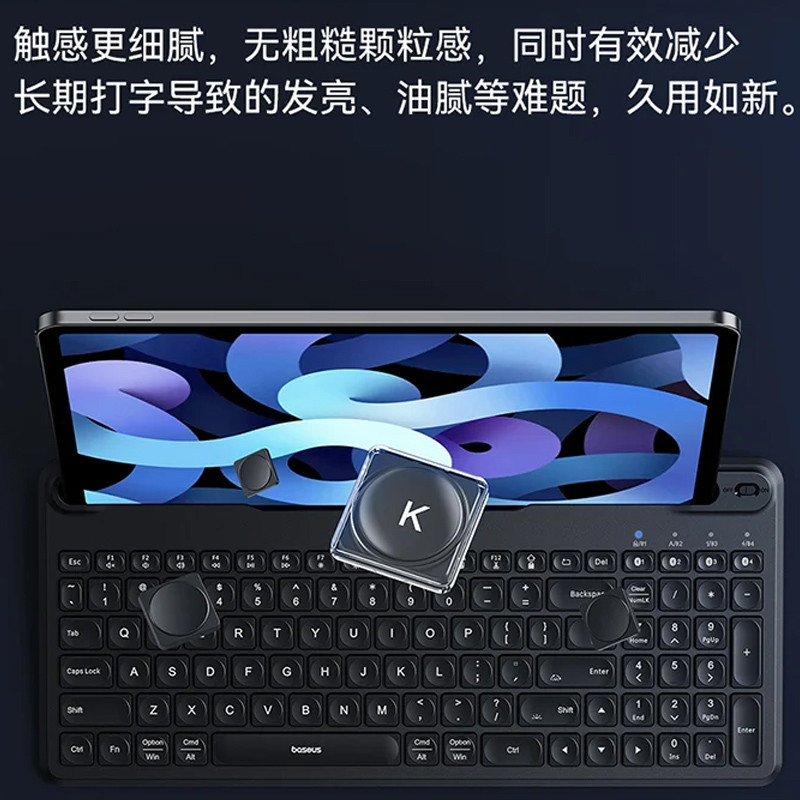 دکمه های کیبورد با مواد مات ساخته شده اند که می توانند به طور موثری مشکلاتی مانند درخشش و چربی ناشی از استفاده طولانی از آن را کاهش دهد. کلید ها در قطر 1.5 میلیمتری و با ساختار قیچی ( زیر دکمه کلید که در واقع روی بورد قرار گرفته است، دو قطعه پلاستیکی قرار دارد که مانند قیچی باز و بسته می شود. ) ساخته شده اند که فشار دادن راحت و سریع و تایپ با سرعت بالا را ممکن می سازد. این محصول دارای اسلات کارت تبلت است و تبلت های تا اندازه 11 اینچ را بدون مسدود کردن صفحه نمایش پشتیبانی می کند. زاویه ورودی تبلت 6 درجه و زاویه بین تبلت و کیبورد 120 درجه است. بنابراین طراحی کیبورد K03 برای زوایای چشم و دست ارگونومی و مناسب کار طولانی مدت بدون احساس خستگی است. این کیبورد با سیستم عامل های مختلف اپل ، اندروید و ویندوز سازگاری دارد.