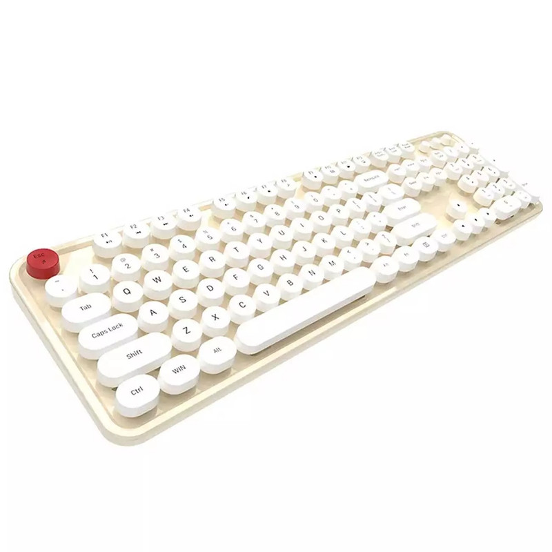 این کیبورد با طراحی ارگونومیک برگرفته از کلیدهای صفحه ماشین تایپ های کلاسیک ولی با رویکردی نوین و رنگی ترند و مد روز بدون فرم و با کلیدهای گرد فرو رفته با فرم قطره و از پلی کربنات نسوز بسیار مقاوم ساخته شده و مناسب برای استفادههای طولانی مدت است و از خستگی دستها در مدت تایپ کردن به شدت می کاهد.