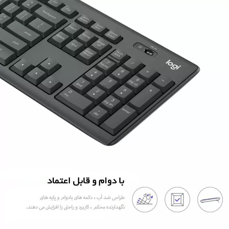 روی کار خود متمرکز بمانید و حواس پرتی را حذف کنید. با کیبورد و ماوس کمبو لاجیتک مدل Logitech MK295 Silent Wireless Combo می توانید با فناوری SilentTouch آشنا شوید؛ فناوری انحصاری لاجیتک که بیش از 90 درصد از نویز صفحه کلید و ماوس را حذف می کند. از کلیک کردن و تایپ کردن با پرفروشترین کمبو کیبورد و ماوس جهان لذت ببرید و با صدای نویز کلیک و تایپ و حواس پرتی خداحافظی کنید.فناوری نوآورانه SilentTouch ما بیش از 90٪ صدای کلیک و تایپ را کاهش می دهد که بیش از 90٪ از صداهای مختل کننده را برای شما و اطرافیانتان کاهش می دهد – همه اینها در حالی که حس آشنای تایپ و کلیک را از پرفروش ترین برند ماوس و کیبورد جهان، حفظ می کند.کیبورد کمبو MK295 با اندازه کامل و استانداردی که دارد،تمام آنچه را که نیاز دارید در طراحی زیبا و کارآمد فراهم می کند.وجود 8 کلید میانبر راحت به اضافه numpad کامل،ورود داده ها و ناوبری را بسیار ساده کرده است.به لطف یک اتصال بی سیم قوی و قابل اعتماد 2.4 گیگاهرتز با برد 10 متر، عدم اتصال و تاخیر را فراموش کنید.میز خود را با یک گیرنده USB از شلوغی آزاد کنید— این گیرنده بقدری کوچک است که می تواند در کامپیوتر شما جای گیرد.طراحی ضد آب، کلیدهای بادوام و پایههای شیبدار محکم با ارتفاع قابل تنظیم، لایه ای از کاربری آسان و راحتی را اضافه میکند.کلیدهای نرم و فرو رفته و استراحتگاه دست در کیبورد و ماوس لاجیتک (کمبو) MK295 باعث میشوند که شما به راحتی تایپ کنید.این ماوس از طراحیای منحصر به فرد و مناسب رای حمل راحت، بهره مند شده است. همچنین، بر روی اکثر سطوح با دقت بسیار بالا کار میکند. ناگفته نماند که با بهره مندی از تکنولوژی SilentTouch، امکان کار کردن در سکوتی دلپذیر را خواهید داشت.میتوانید گیرنده را روی لپتاپ خود نصب کنید و یک ماوس یا کیبورد دیگر را به آن اضافه کنید و از دردسر داشتن چند گیرندۀ مختلف دور بمانید.اتصال با یک گیرنده، تنها یکی از ویژگیهای کیبورد و ماوس کمبو است.کیبورد و ماوس لاجیتک (کمبو) MK295 خود را توسط یک دانگل یونیفایینگ کوچک (Logitech Unifying™ USB) به یکدیگر متصل کنید و یک اتصال وایرلس قابل مطمئن خواهید داشت که بدون هیج تأخیر یا قطع شدن تا برد 10 متر کار می کند.