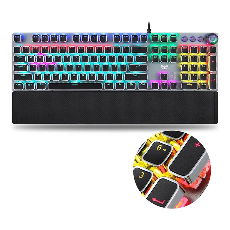 کیبورد گیمینگ ایولا Aula gaming keyboard F2088، یکی از محصولات بسیار پر طرفدار ایولا است. این کیبورد مخصوص بازی برای برنامهنویسی، بازیهای حرفهای و تایپ سریع مناسب است. کیبورد گیمینگ ایولا مدل F2088، کلید چند منظورهای دارد که میتواند صدا، نور پس زمینه و جلوههای پس زمینه را کنترل کند. صفحه کلید کیبورد مخصوص بازی ایولا F2088 دارای یک قسمت جدا شونده است که برای استراحت مچ دست تعبیه شده است. این کیبورد گیمینگ ایولا F2088 از مواد سازگار با پوست ساخته شده است و دارای 6 زاویه است. بنابراین میتوانید مدت زمان طولانی را به بازی یا برنامهنویسی بدون خستگی بپردازید. 22 حالت نور LED رنگارنگ پس زمینه، باعث میشود شما فضای بازی عالی را درک کنید. دو گزینه برای انتخاب حالت نور پس زمینه دارید یکی نور پس زمینهی ثابت و دیگری نور پس زمینهی خودکار. همچنین میتوانید میزان نور پس زمینه و نور پس زمینهی خودکار را با توجه به ترجیحات خود تنظیم کنید. هر کدام از کلیدهای کیبورد گیمینگ F2088 نور پس زمینه دارد که با توجه به این ویژگی میتوانید در تاریکی نیز بازی، تایپ و برنامهنویسی انجام دهید. به لطف تکنولوژی N Key Rollover میتوانید هر 104 کلید کیبورد را با هم فشار دهید و همهی دستورات کلیدها به طور کامل اجرا شوند که این نشان از آنتی گوستینگ (anti-ghosting) بودن کیبورد مخصوص بازی ایولا F2088 دارد. کیبورد گیمینگ ایولا Aula gaming keyboard F2088 دارای ورودی USB است و برای لپتاپها، تبلتها، کامپیوترهای شخصی مناسب است.