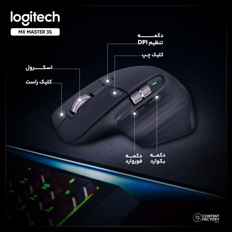 ماوس بی سیم لاجیتک مدل MX MASTER 3S بدون هیچ اغراقی یکی از بهترین و مناسبترین ماوسها برای افراد حرفهای به شمار میرود. برند Logitech یک برند مطرح سوئیسی است که در زمینه تولید انواع ابزارهای جانبی کامپیوتر فعالیت دارد. این ماوس از برند لاجیتک دقتی برابر با 8000 DPI دارد که برای یک ماوس غیرگیمینگ فوقالعاده است. شما با یک دقیقه شارژ میتوانید 3 ساعت و با 3 ساعت شارژ میتوانید 70 روز از این ماوس استفاده کنید. همچنین ماوس مذکور را میتوانید هم از طریق بلوتوث و هم از طریق دانگل به دستگاه خود وصل کنید. دانگل logi Bolt میتواند برای شما امکان اتصال همزمان این ماوس را به 3 دستگاه فراهم کند. طراحی خاص این ماوس میتواند مانع از خستگی دست کاربر برای زمانی طولانی شود. دو اسکرول مجزا، دو دکمه Backward و Forward و در کل 7 دکمه قابل تنظیم با نرمافزار Logi Options دارد. بُرد این ماوس در حدود 10 متر است. این ماوس را میتوانید بر روی تمامی سطوح از جمله شیشه و فرش هم استفاده کنید. کلیکهای این ماوس بیصدا هستند. وزن بیشتری نسبت به ماوسهای معمولی دارد و به همین دلیل قابلیت کنترل بیشتری به کاربر میدهد. یکی از جذابیتهای استفاده از ماوس MX MASTER 3S این است که میتوانید با اتصال سه دستگاه مختلف مثل لپتاپ، تبلت و گوشی از طریق دانگل به راحتی تنها با یک درگ ساده، فایلها را بین این دستگاهها جابهجا کنید. این ماوس یکی از بهترین انتخابها برای افرادی است که کار تدوین، برنامهنویسی یا طراحی انجام میدهند.