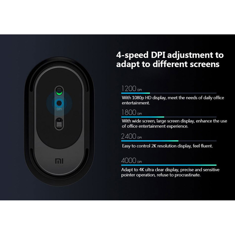 همچنین در موس BXSBMW02 لازم نیست نگران جا گذاشتن دانگل وایرلس باشید، زیرا بدون استفاده از دانگل نیز این موس از طریق بلوتوث کار خواهد کرد. از دیگر مزایای این موس می توان به امکان تنظیم میزان دقت یا DPI آن اشاره کرد. به این ترتیب که با دکمه مخصوصی که برای آن تعبیه شده و زیر ماوس قرار گرفته است، میتوانید میزان Dpi را تغییر دهید. این میزان از بین 1200Dpi ، 1800Dpi ، 2400Dpi و 4000Dpi قابل انتخاب است. باید بدانید که برای رزولوشنهایی تا 4K نیز، میزان دقتهایی که گفته شد، قابل پشتیبانی هستند.