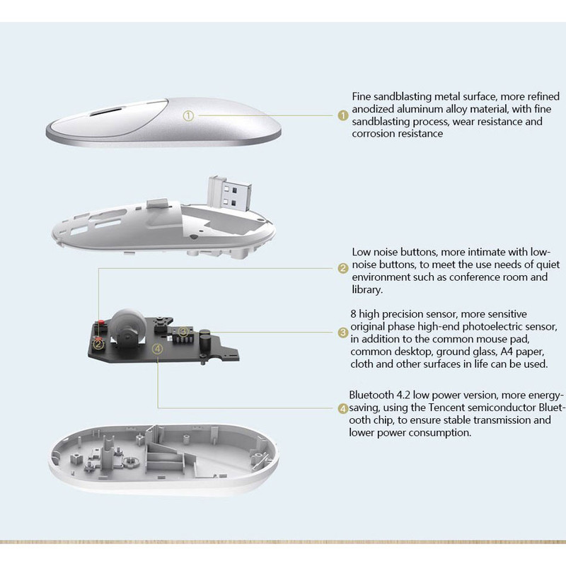 موس وایرلس شیائومی Xiaomi BXSBMW02 فقط یک موس بی سیم عادی نیست. این موس علاوه بر اتصال از طریق وایرلس با دانگل USB به کامپیوتر، می تواند با استفاده از بلوتوث نیز به دستگاه ها متصل شود. به این معنا که موس های دیگر فقط از طریق وایرلس 2.4 گیگاهرتز متصل می شوند. اما شیائومی علاوه بر این قابلیت، امکان اتصال موس به دستگاه ها بدون استفاده از دانگل و با بلوتوث را در این موس تعبیه کرده. به این ترتیب یکی از ایرادات بزرگ موس های وایرلس که اشغال پورت USB بود برطرف می شود.