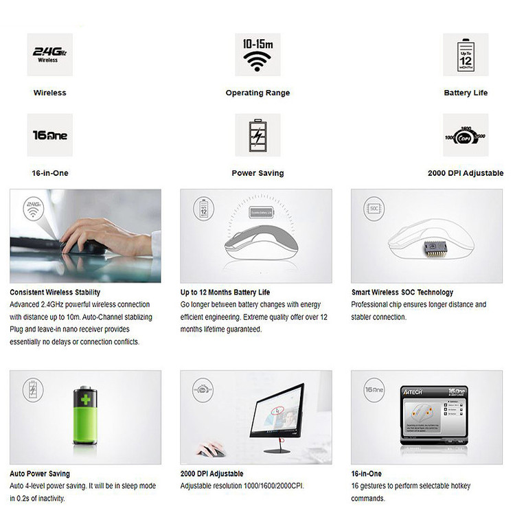 ماوس ای فورتک بی سیم مدل A4TECH G7-600NX. این ماوس ساخت شرکت A4TECH می باشد.تعداد کلید این ماوس بی سیم دارای طراحی خاصی می باشد.و از قابلیت های کلیدی این ماوس فناوری SOC بی سیم هوشمند است.طراحی این ماوس به نحوی است که از ورود گرد و غبار جلوگیری می کند