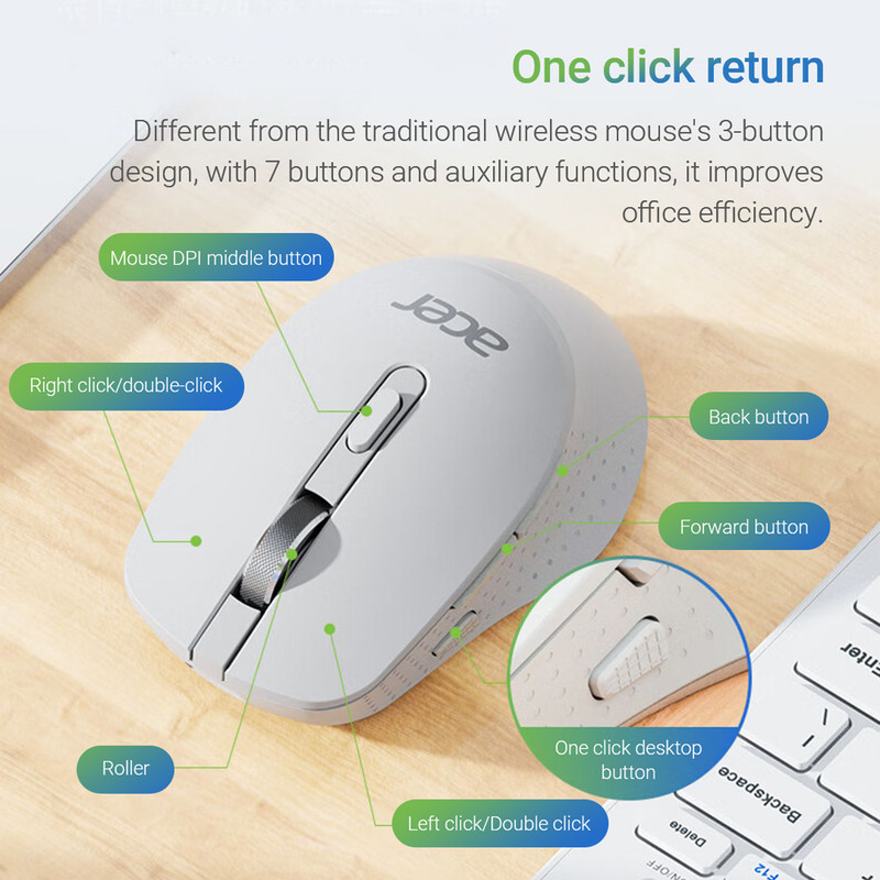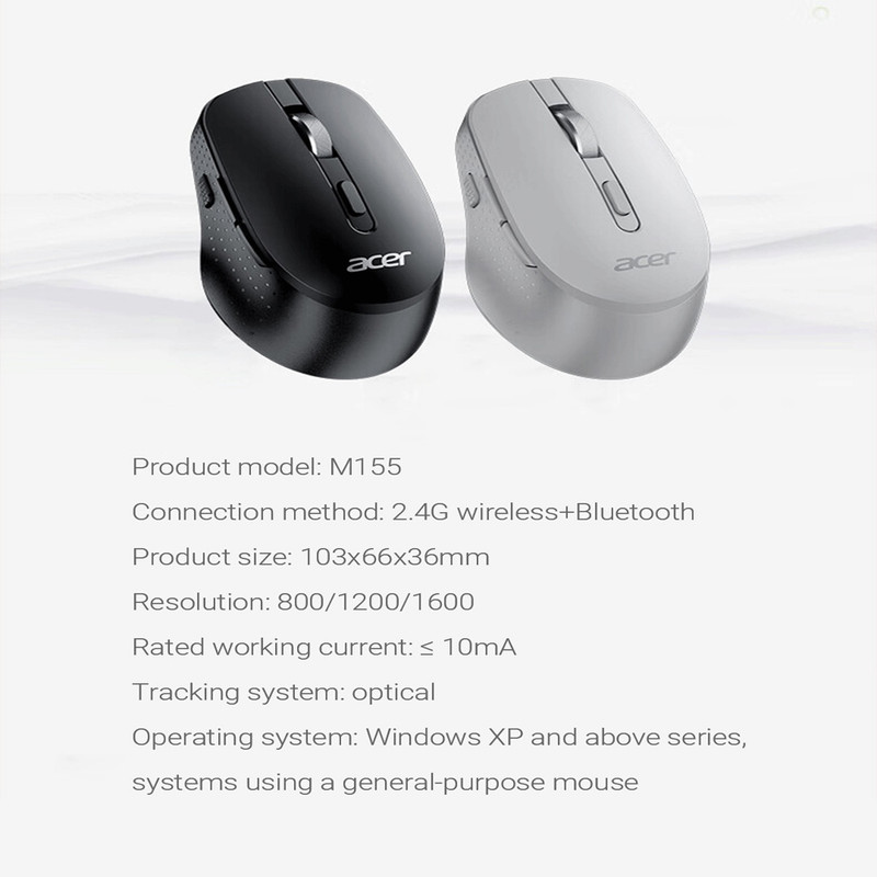 موس بلوتوث ایسر مدل M155 یک محصول وایرلس که از طریق فناوری بیسیم با فرکانس پاسخ گویی 2.4Ghz از طریق یک دانگل usb به کامپیوتر و لبتاب شما متصل میشود. ظاهر ساده و در عین حال شیک با طراحی ارگونومیک و مهندسی مناسب برای استفاده هر دو دست و چپ دست ها بوده و ابعاد مناسب و وزن متعادل و ساختار بدون سیم آن سبب میشود حمل آن آسان و میز شما همیشه مرتب و بدون سیم باشد. ماوس بیسیم بخش هایی همچون فرستنده و گیرنده دارد، فرستنده در داخل موس قرار گرفته و قابل مشاهده نیست. و گیرنده در داخل دانگل که به شکل USB به همراه موس است قرار گرفته است. وایرلس بودن و محدوده عملکرد موس بلوتوث در حدود 10 متر را پشتیبانی میکند.اما نکته که کاربر باید در نظر داشته باشد این که فاصله بین موس و دستگاه نباید خیلی زیاد باشد که این فاصله با توجه به کیفیت و نوع فرکانس متفاوت است. توانایی خاموش شدن خودکار جهت ذخیره کردن و هدر نرفتن انرژی باتری در زمان هایی که از موس استفاده نمیکنید.