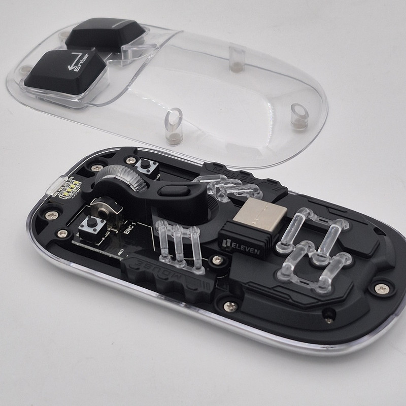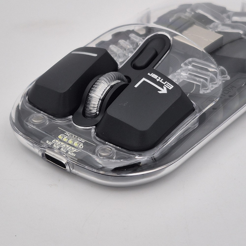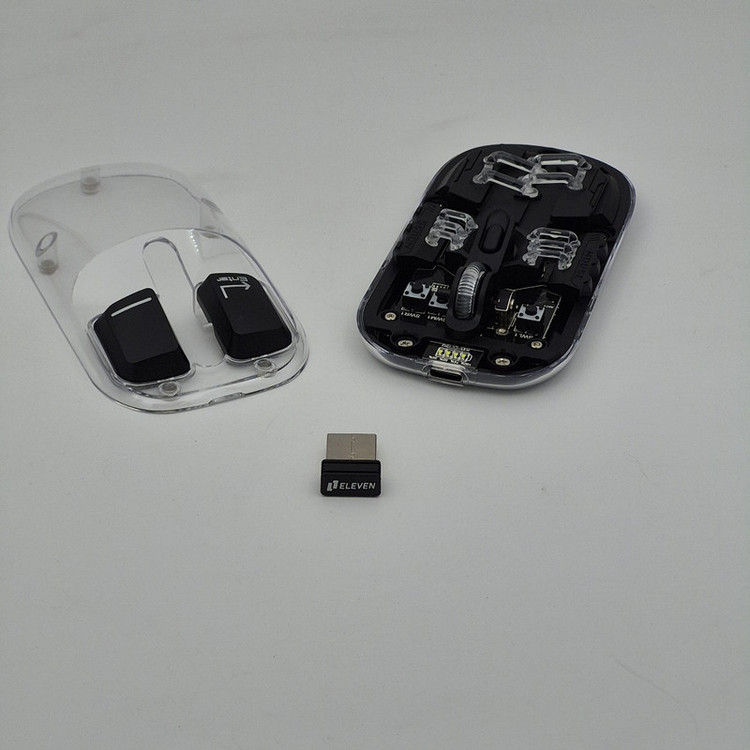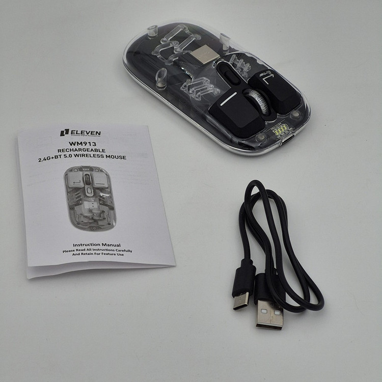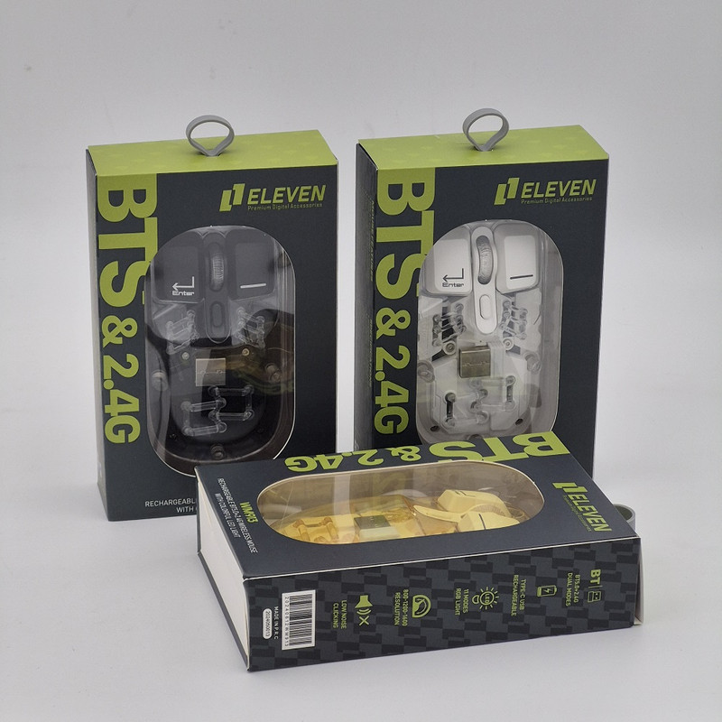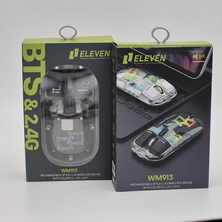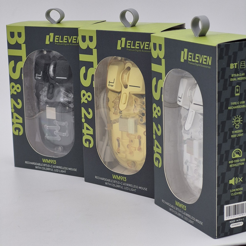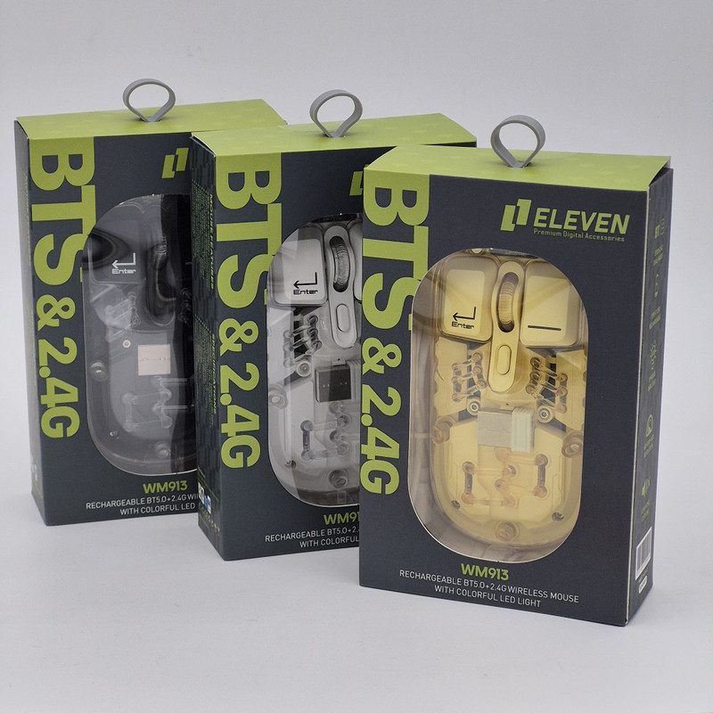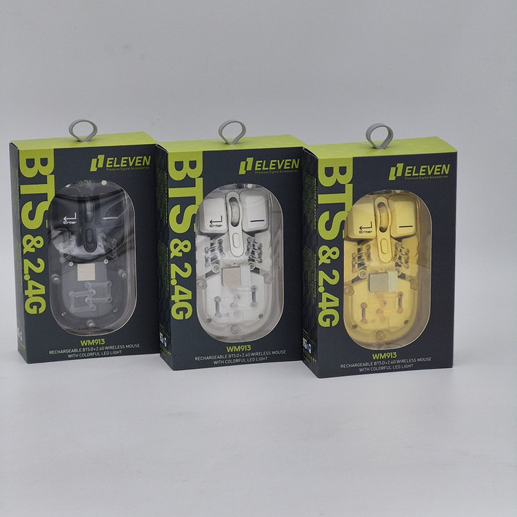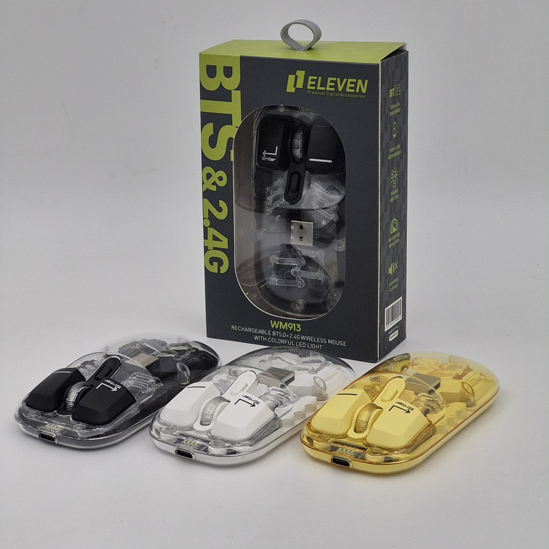 ماوس WM913 برند ELEVEN یکی از جدید ترین محصولات سال 2024 این برند هستش. این ماوس جدید فانتزی مجموعه ای از آپشن های مورد نیاز را دارد و یک ماوس همه چیز تمام هستش. WM913 ماوس شارژی هستش که شما را از خرید باتری بی نیاز میکند داخل خودش یک باتری 400 میلی آمپری هستش که در صورت استفاده مداوم و از فاصله نزدیک تا یک هفته میتوانید استفاده کنید بعد از اتمام شارژ آن جای نگرانی نیستش چون این ماوس با درگاه TYPE-C شارژ میشود و شما به راحتی میتوانید آن را شارژ کنید.این ماوس قابلیت نمایش میزان شارژ را دارد تا دیگر در حین کار شارژ ماوس تمام نشود. از دیگر کارایی های فوق الهاده آن قابلیت اتصال همزمان یک دانگل و یک بلوتوث به صورت همزمان هستش که با کلیدی که در زیر ماوس هستش شما میتوانید انتخاب کنید تا با چه استانداردی وصل شوید. شما در آن واحد میتوانید به یک تلویزیون و یک کیس یا غیره وصل شوید.درب این ماوس به صورت مگنتی هستش که باعث میشود عمر خیلی زیادی داشته باشد و دانگل داخلش قرار میگیرد که دیگر گم نشود. نورپردازی RGB این با دکمه ایی که زیر آن قرار دارد قابل عوض کردن هستش که ده مود رنگبندی جذاب دارد