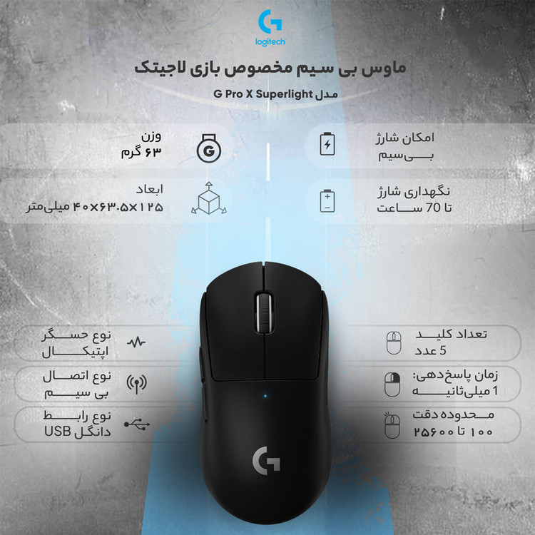 ماوس بی سیم مخصوص بازی لاجیتک مدل G Pro X Superlight