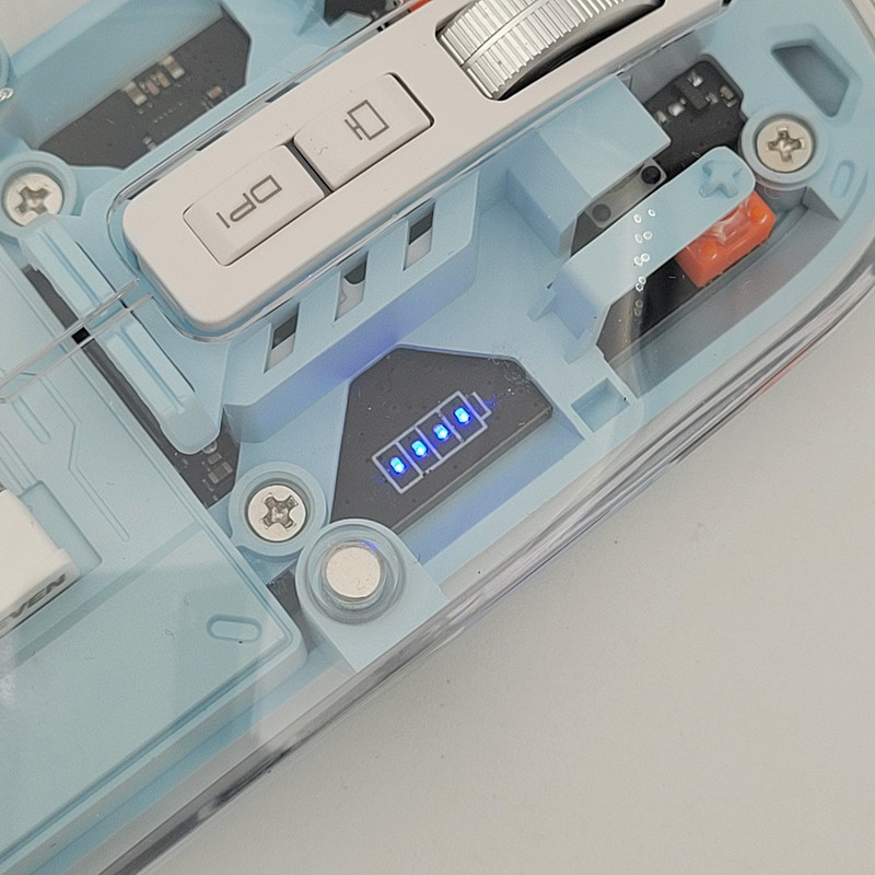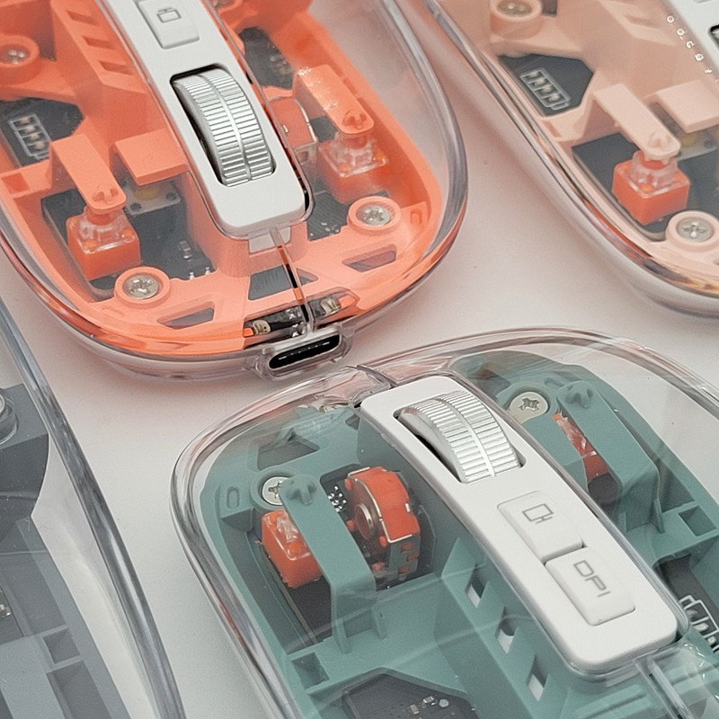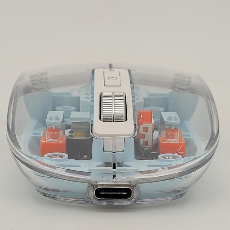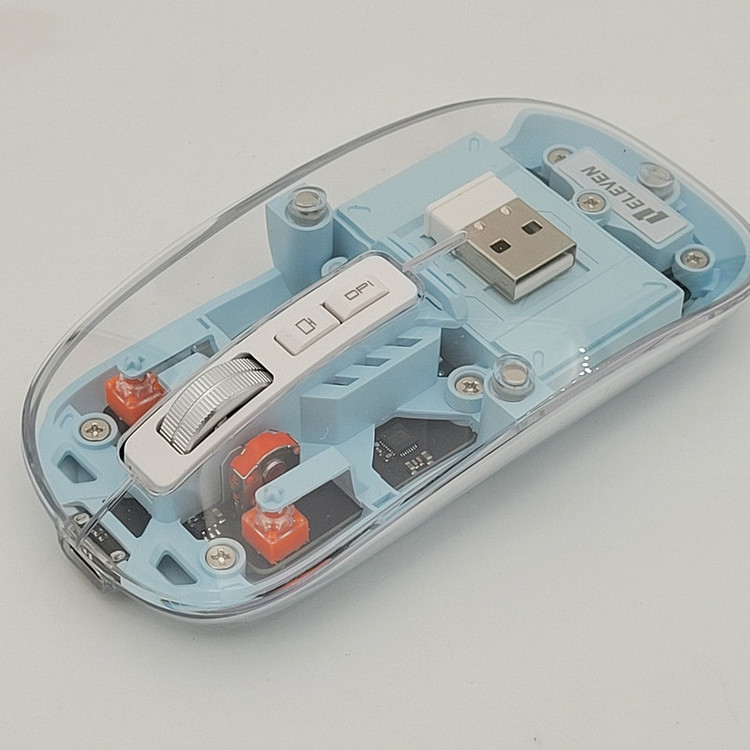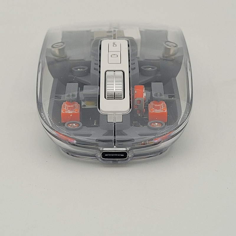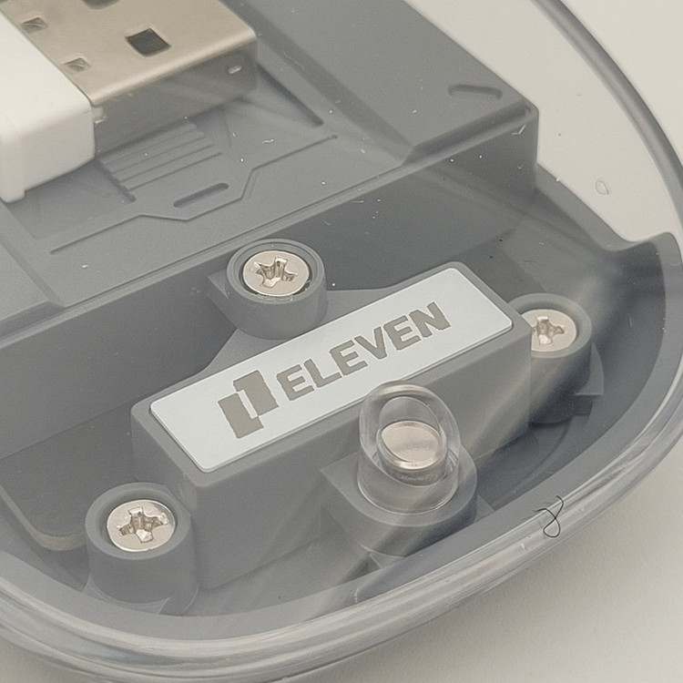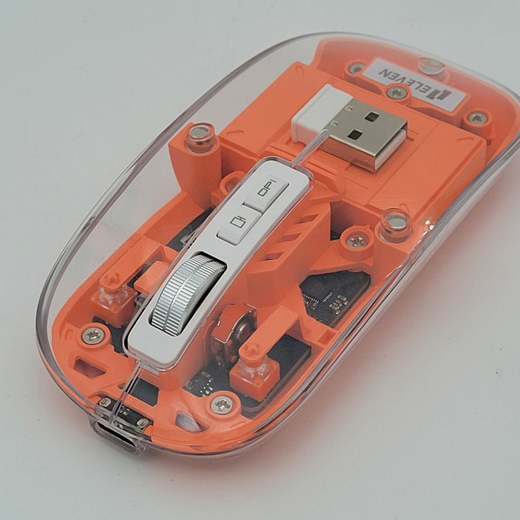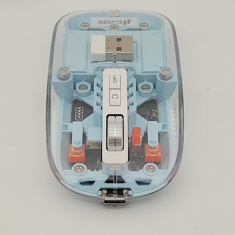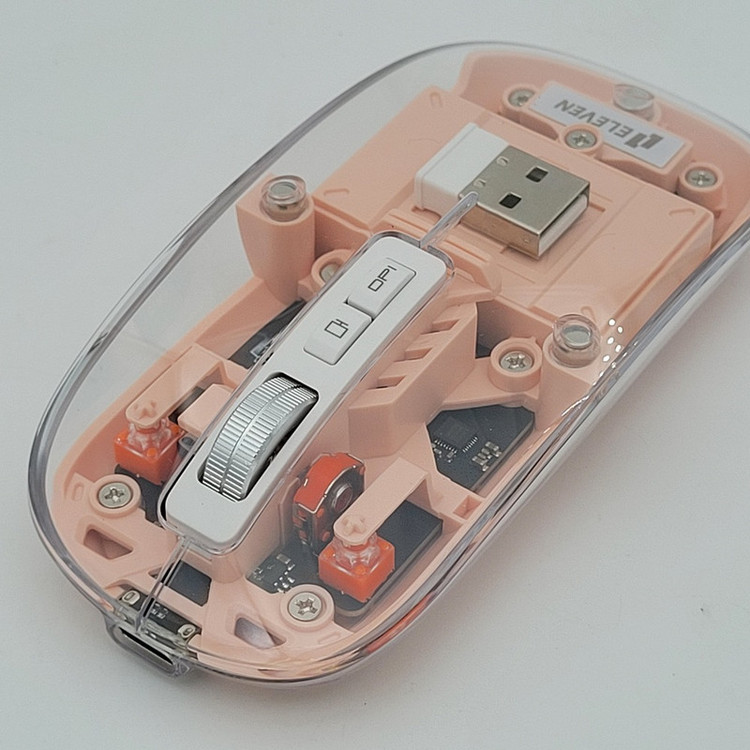 رویه این ماوس شیشه ایی هستش و داخل ماوس به زیبایی قابل دیدن هستش که به عنوان درب هم استفاده میشود و به صورت مگنتی وصل میشود تا عمر زیادی داشته باشد بعد از باز کردن آن شما میتوانید دانگل گیرنده را داخلش بگذارید تا خیالتان از گم شدن راحت باشد.