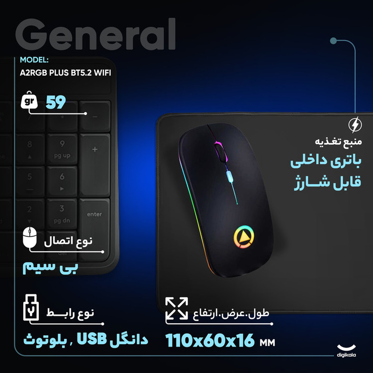 ماوس بی سیم مدل A2RGB PLUS BT5.2 WIFI