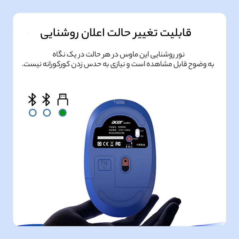 موس اداری OMR060 از برند ایسر بهترین موس اداری است که به صورت اتصال وایرلس و بلوتوث قابل استفاده است. دکمه های کناری این موس آنرا خاص کرده است که برای هر نوع کاربری ای مناسب است و کیفیت ساخت آن بی نظیر است.