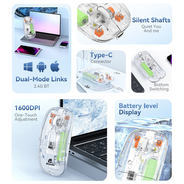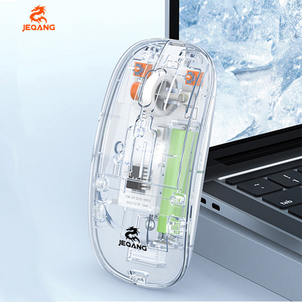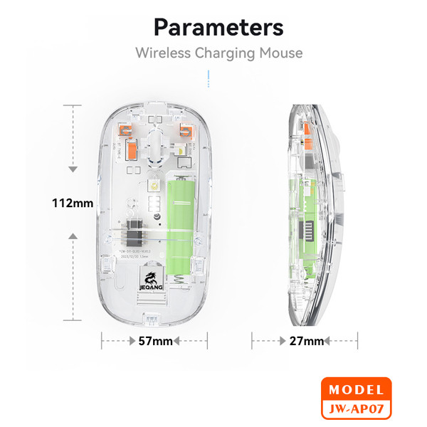 موس بیسیم جکنگ(JEQANG) مدل JW-AP07 یک موس ارگونومیک، منحصر به فرد و دارای طراحی خاص است. روکش این موس شفاف و قابلیت اتصال دو گانه بلوتوث و دانگل USB را دارد که به وسیله یک دکمه که در پشت موس تعبیه شده به راحتی میتوانید بین این دو سوییچ کنید. DPI این موس بین 800-1600 است که دارای سنسورهای حساس و دقیق می باشد و به راحتی می توانید متناسب با نیاز خود آن را تغییر دهید. اگر مدتی از موس استفاده نشود به طور خودکار به حالت خواب رفته که با فشردن یک دکمه دوباره روشن می شود. همچنین این موس شارژی و دارای باطری داخلی 500 میلی آمپر برای تامین انرژی طولانی مدت می باشد که به وسیله یک عدد کابل که به همراه موس است به راحتی شارژ می شود و دارای نمایشگر میزان شارژ باطری است. کلیک های موس JW-AP07 سایلنت بوده و میتوانید به راحتی در مکانهایی مثل کتابخانه از آن استفاده کنید. موس بیسیم جکنگ(JEQANG) مدل JW-AP07 دارای 4 کلیک و ابعاد 27×57×112 است. این موس ظریف، با کیفیت بالا و مقاوم در برابر سایش می باشد.